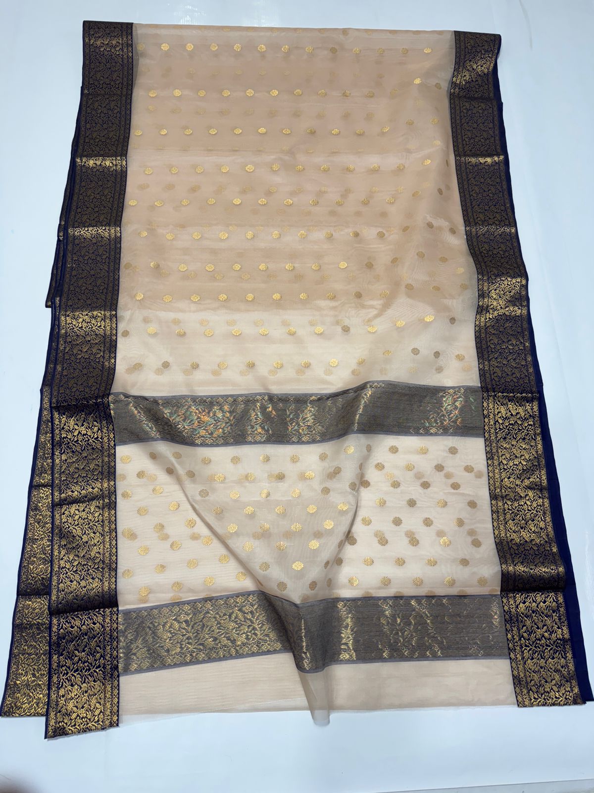 Beige Chanderi Handloom Katan Silk Nakshi Saree