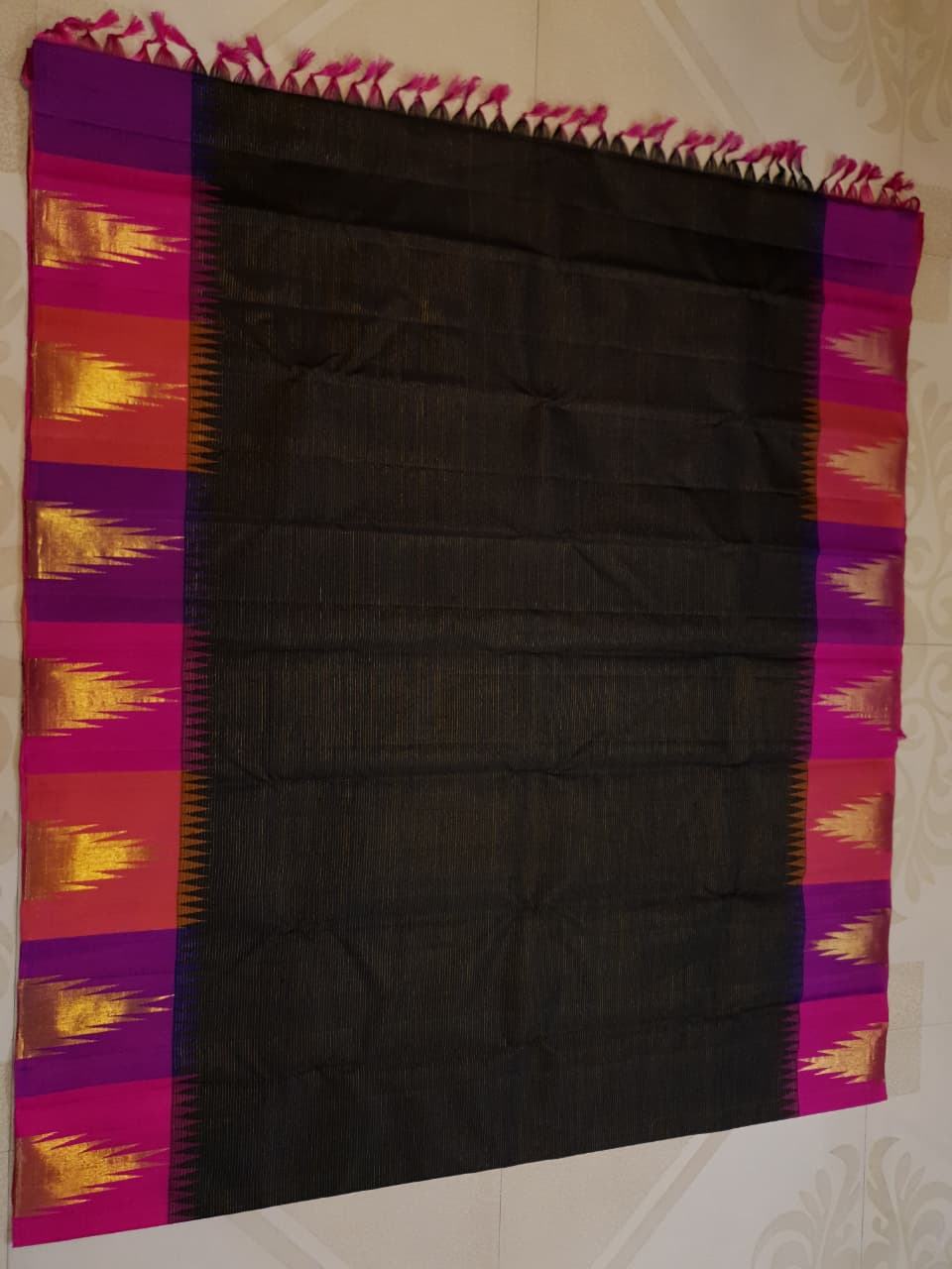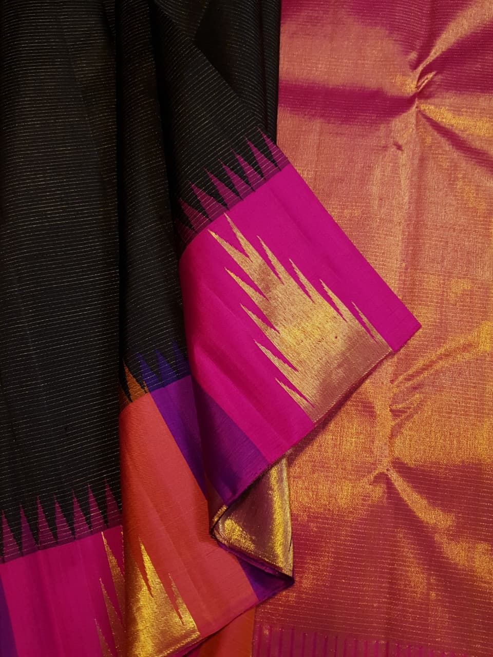 Black Kanchipuram Handloom 2G Gold Korvai Pattu Silk Saree