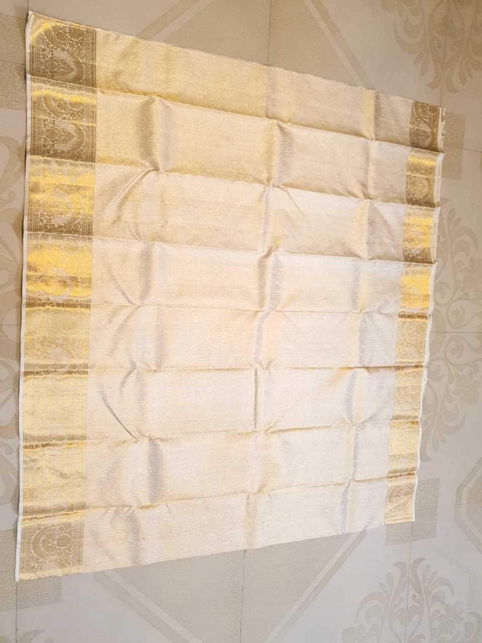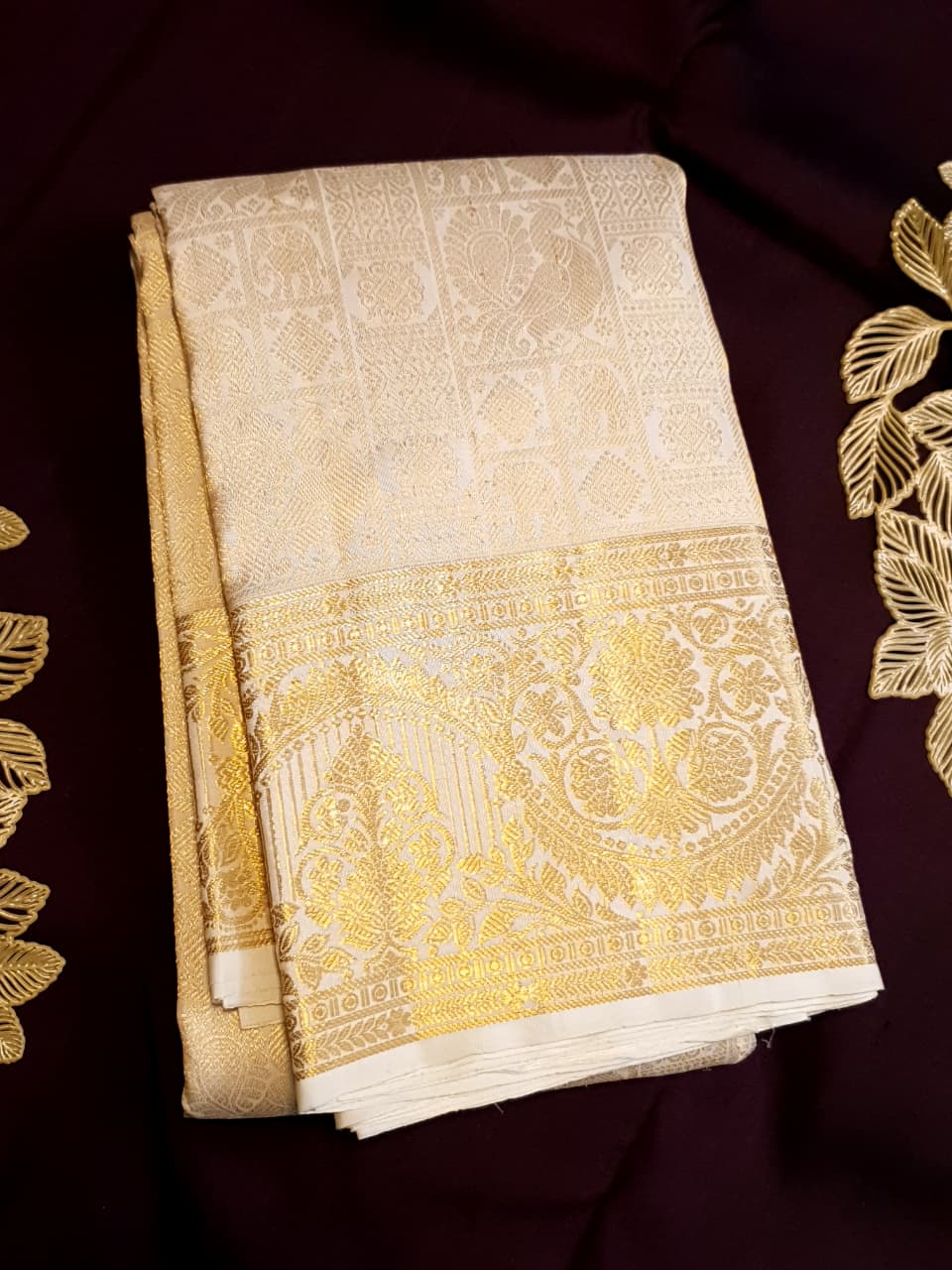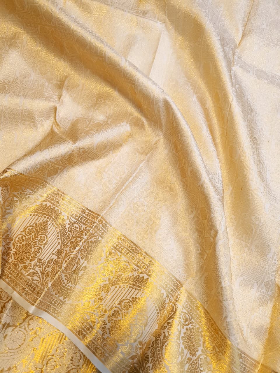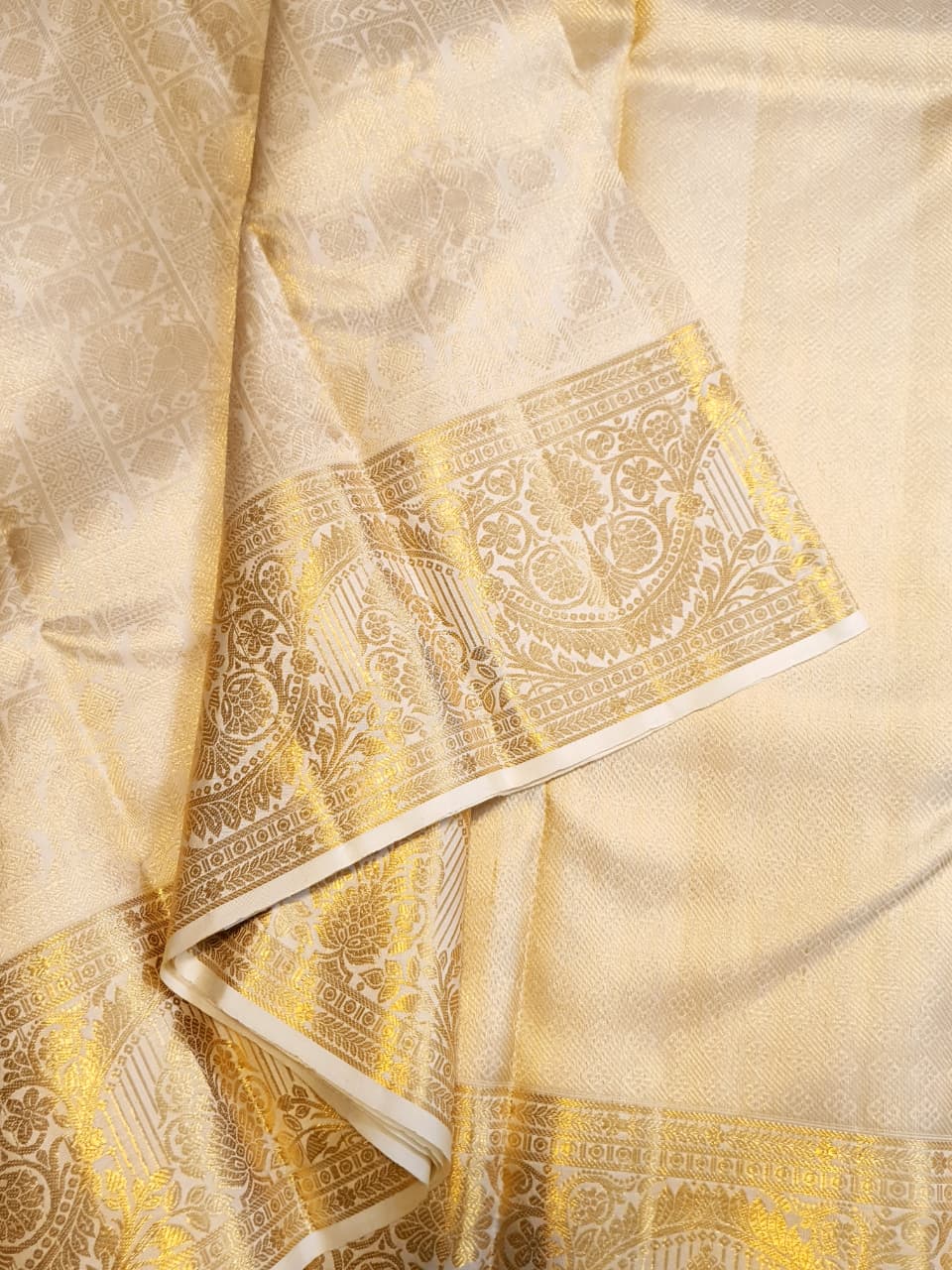 Cream Kanchipuram Handloom 2G Gold Pattu Silk Saree