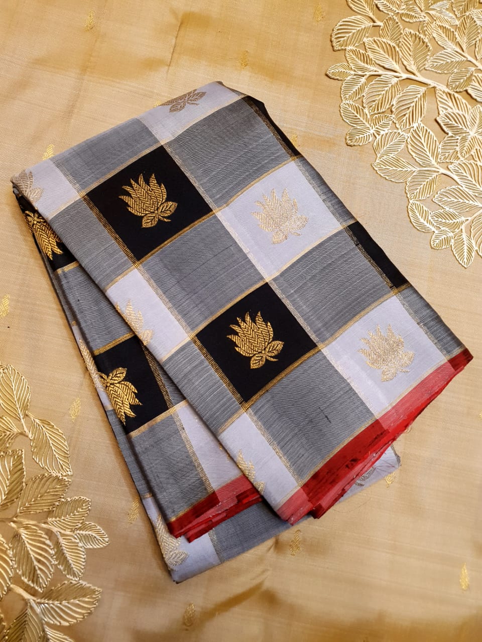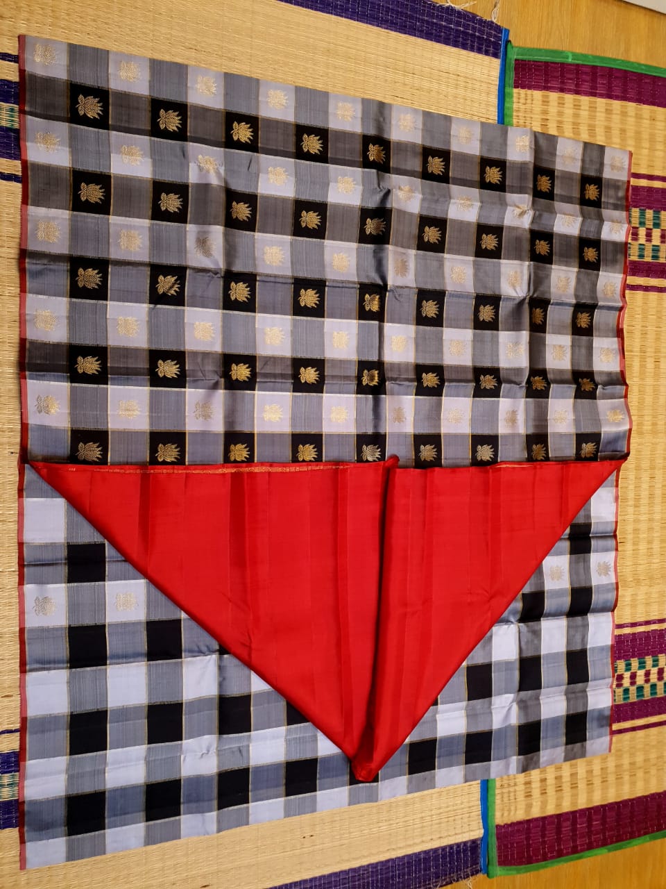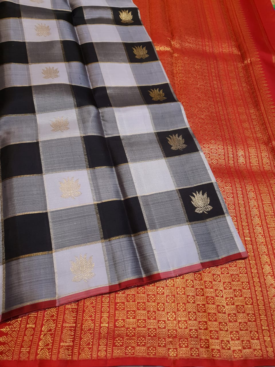 Black & White Kanchipuram Handloom 3G Pure Gold Pattu Silk Saree