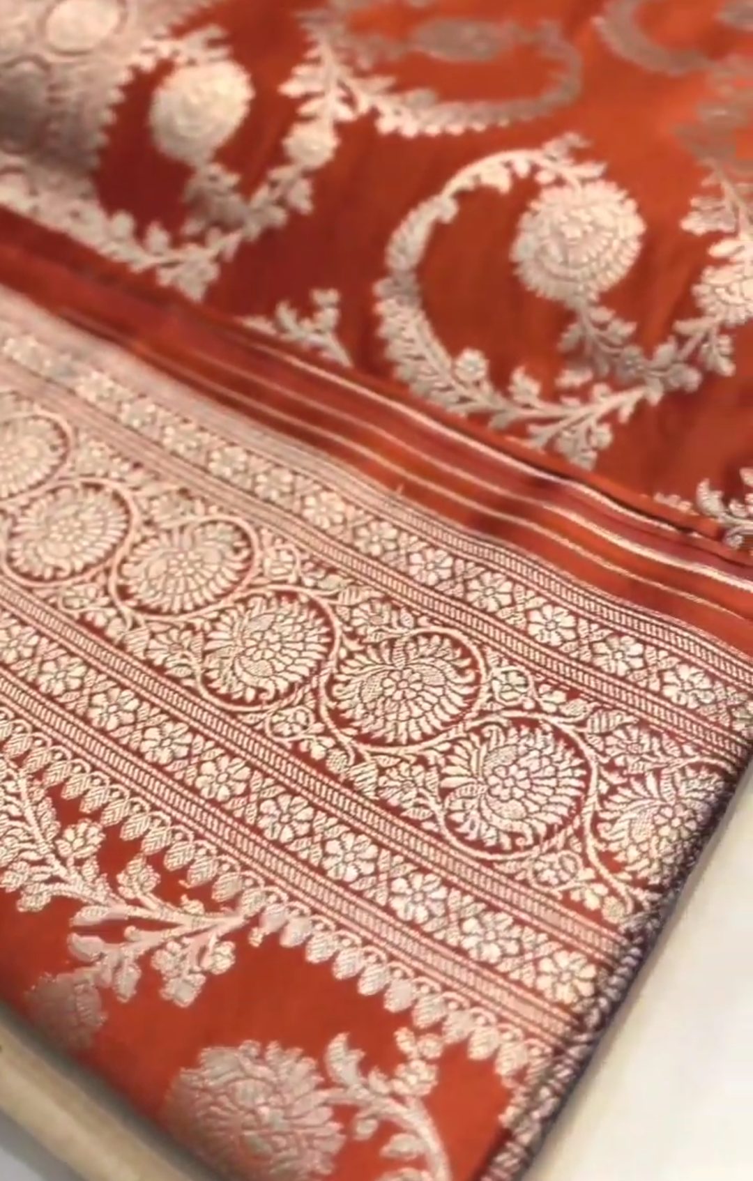 Rustic Red Banarasi Mashru Soft Silk Saree