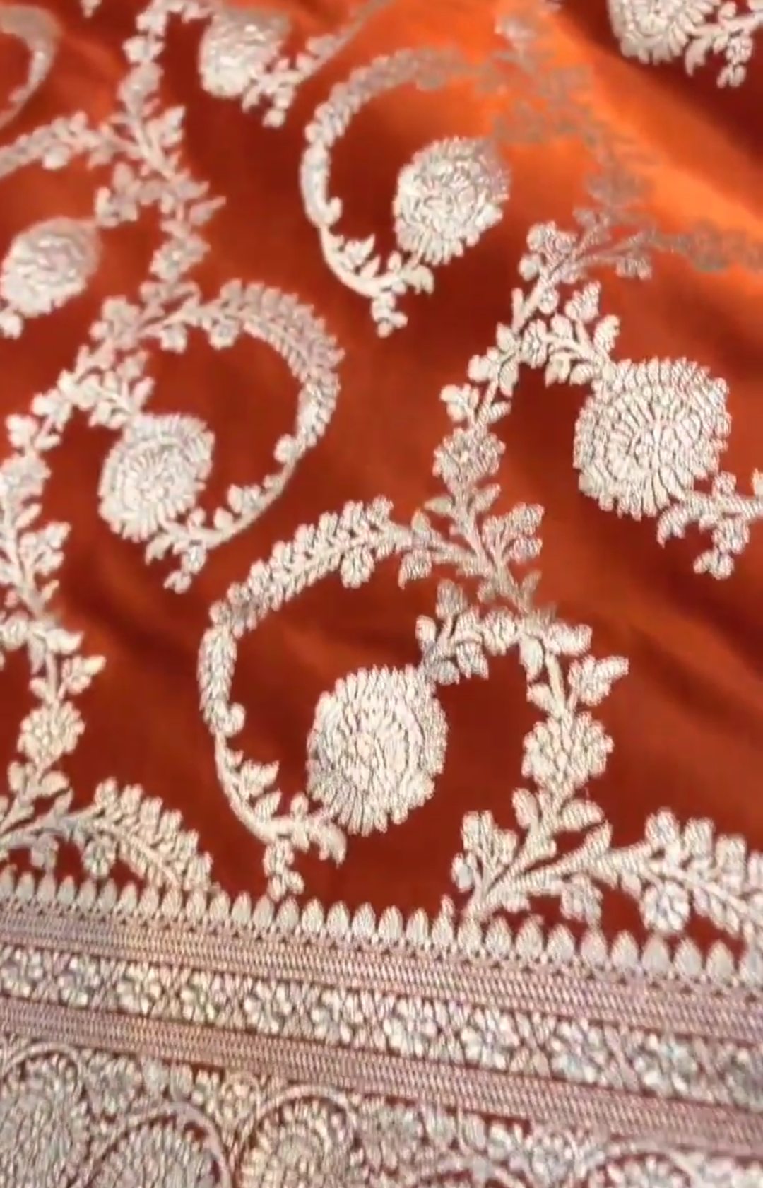 Orange Banarasi Handloom Rangkaat Mashru Silk Saree