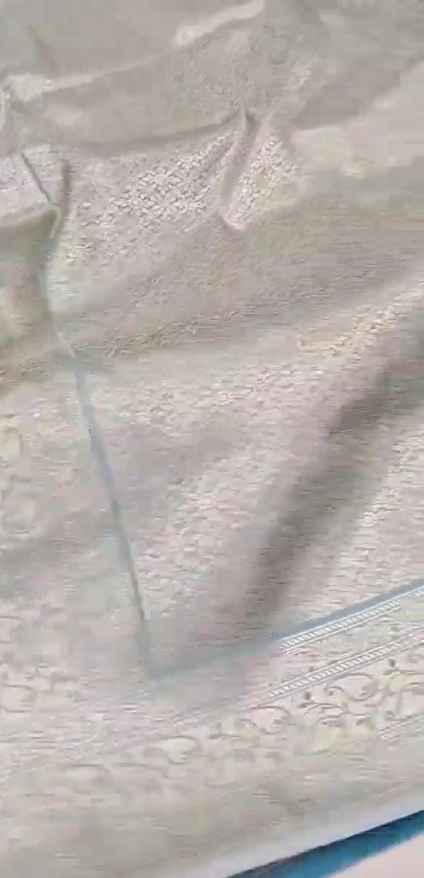 Powder Blue Banarasi Mashru Soft Silk Saree
