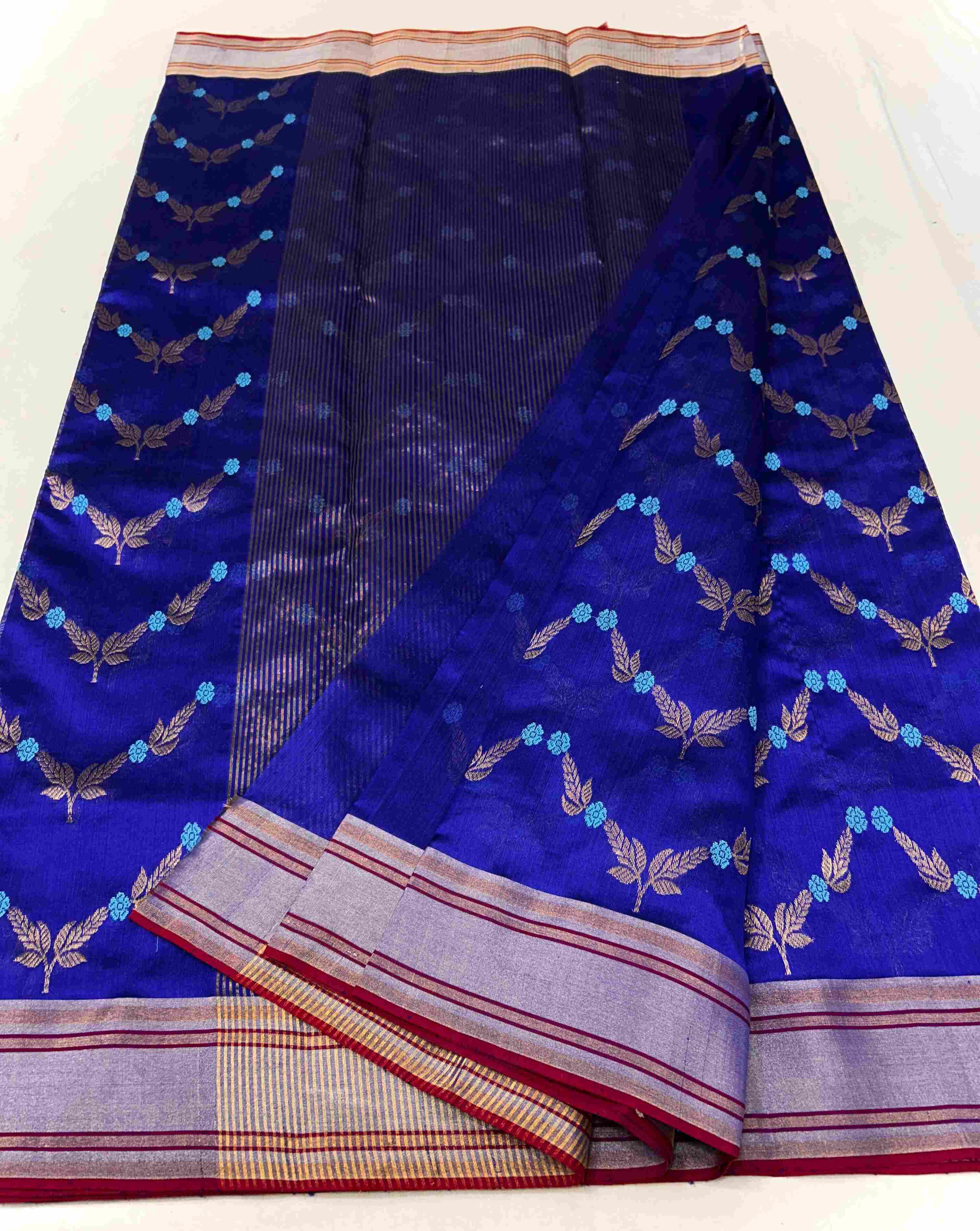 Royal Blue Chanderi Handloom Pattu Silk Handwork Saree