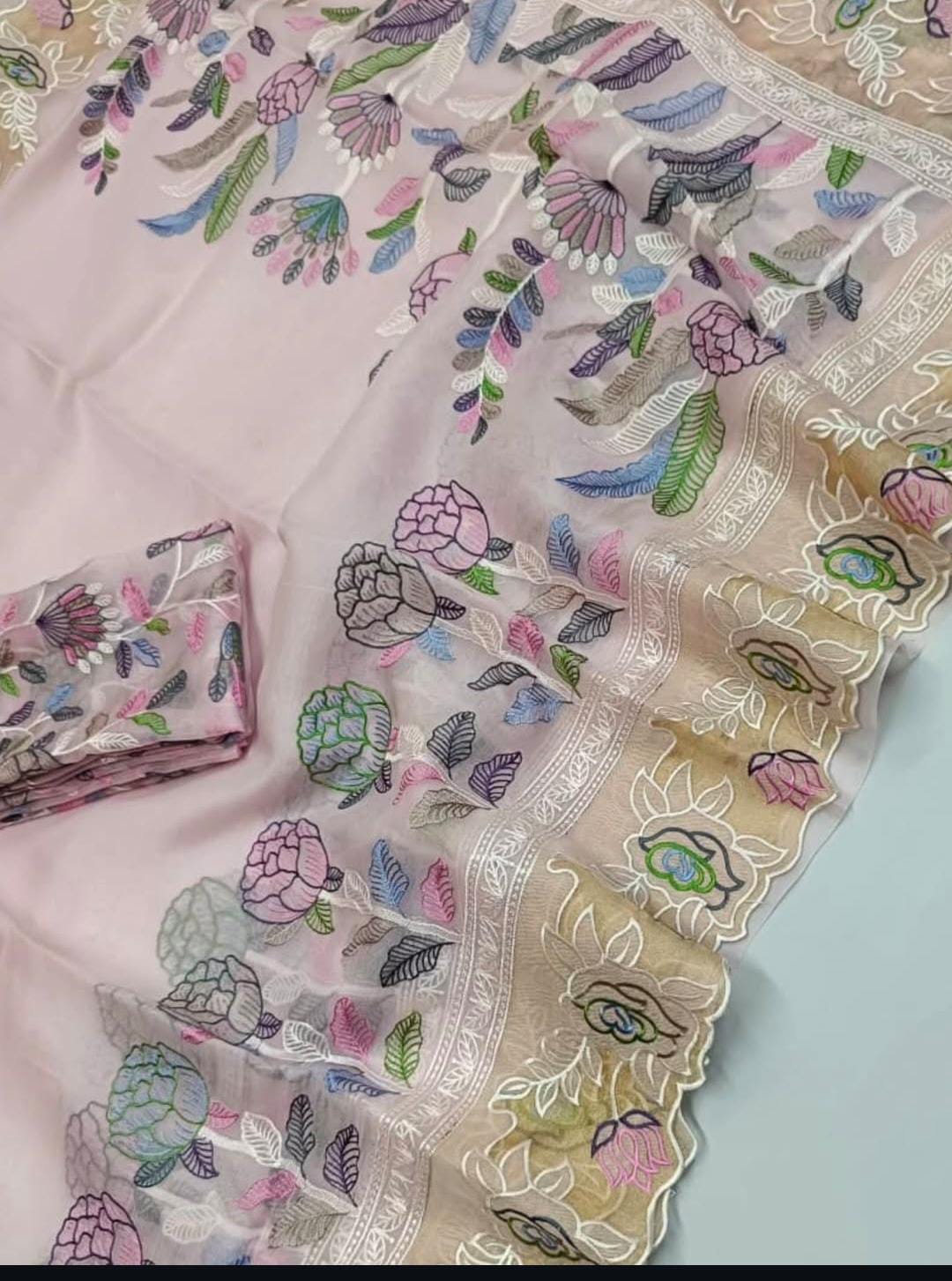 Baby Pink Banarasi Handloom Tissue Silk Paithani Embroidery Saree