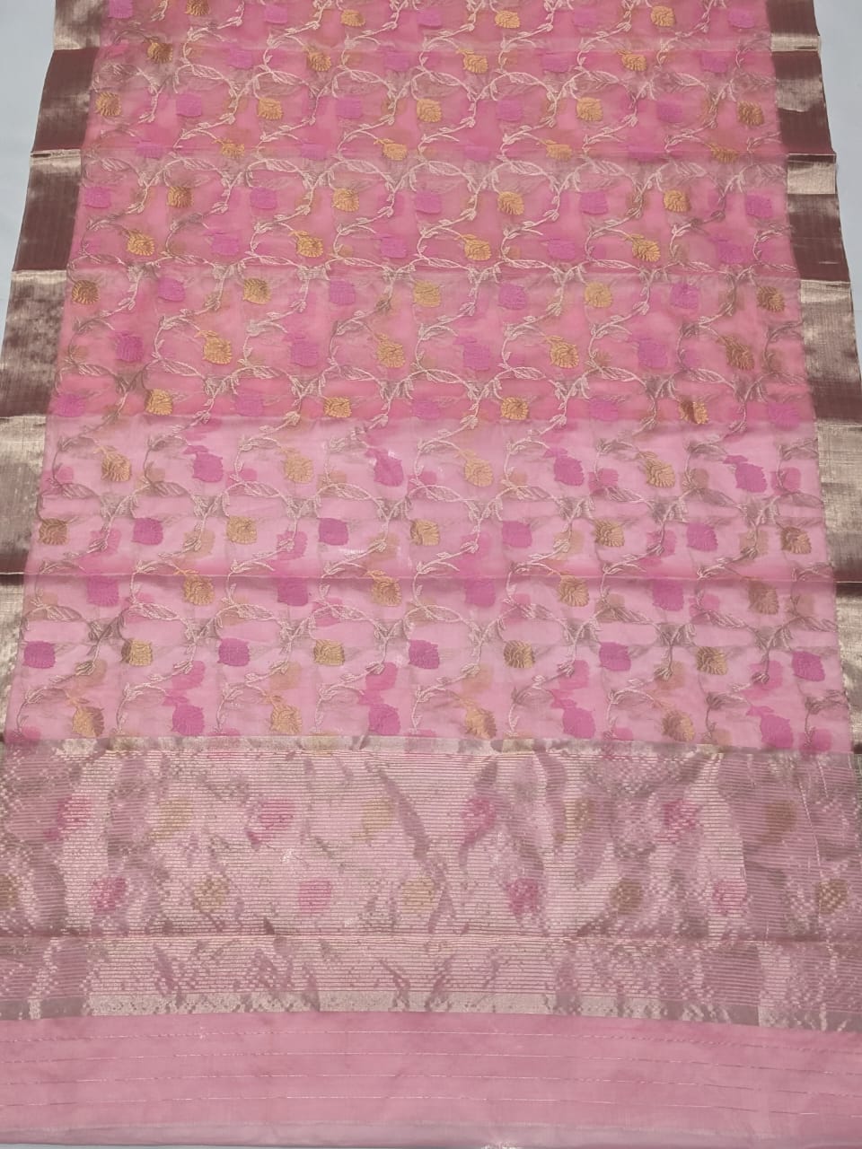 Pink Chanderi Handloom Katan Silk Meenakari Saree