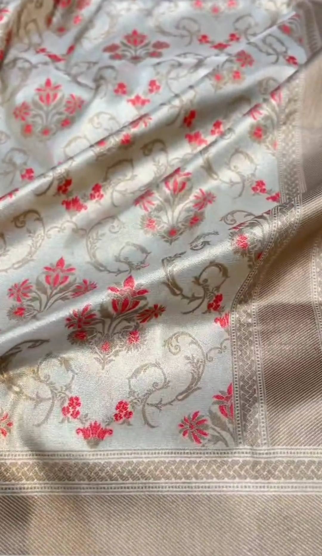 Cream Banarasi Soft Tissue Silk Meenakari Saree