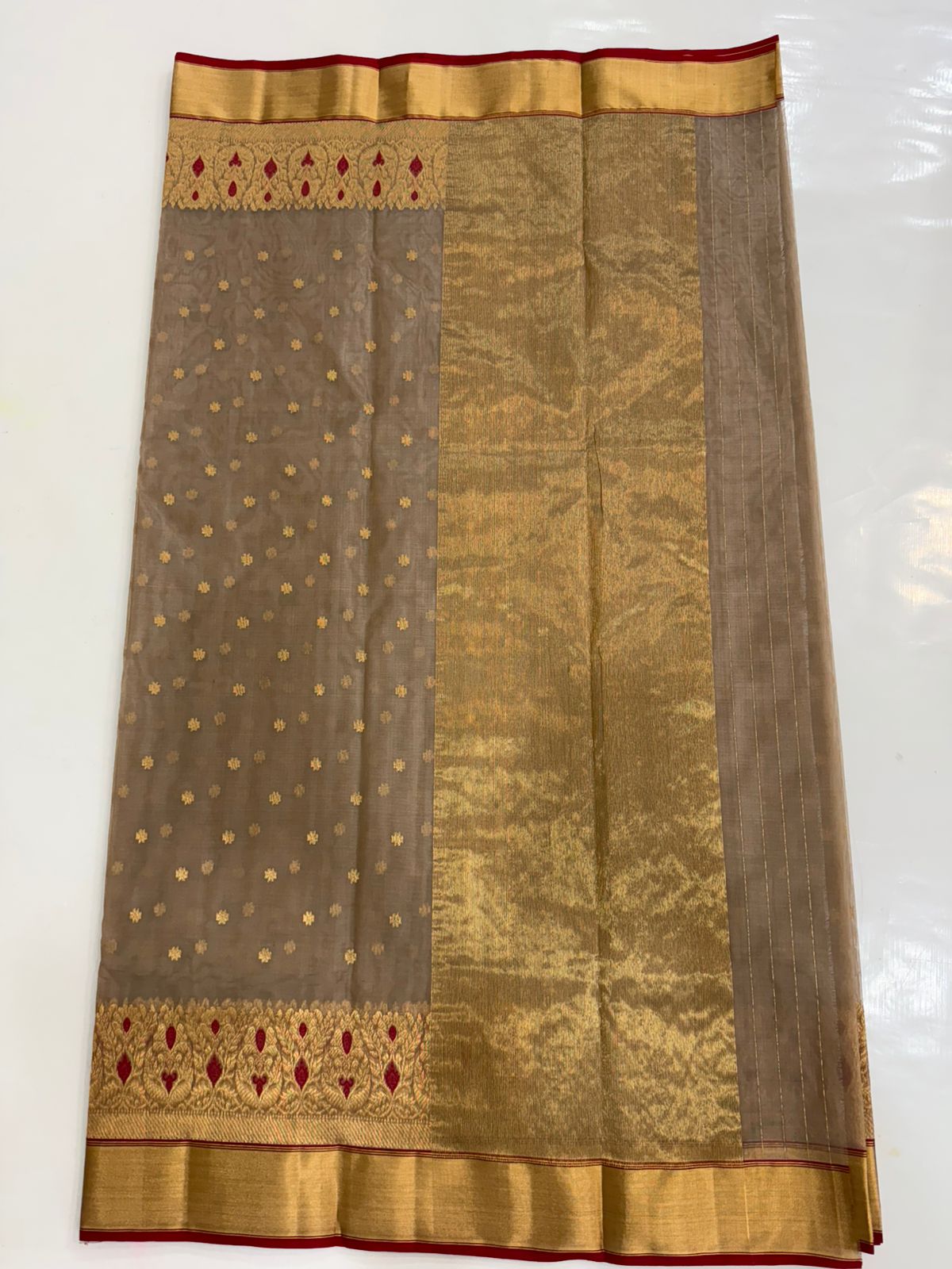 Dual Tone Bronze Chanderi Handloom Katan Silk Nakshi Saree