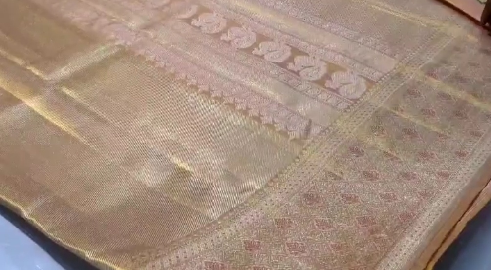 Peach Kanchipuram Handloom Tissue Brocade Silk Saree