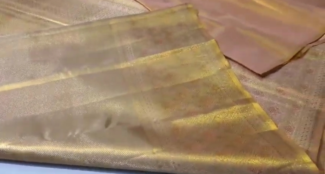 Onion Pink Kanchipuram Handloom Tissue Brocade Silk Saree