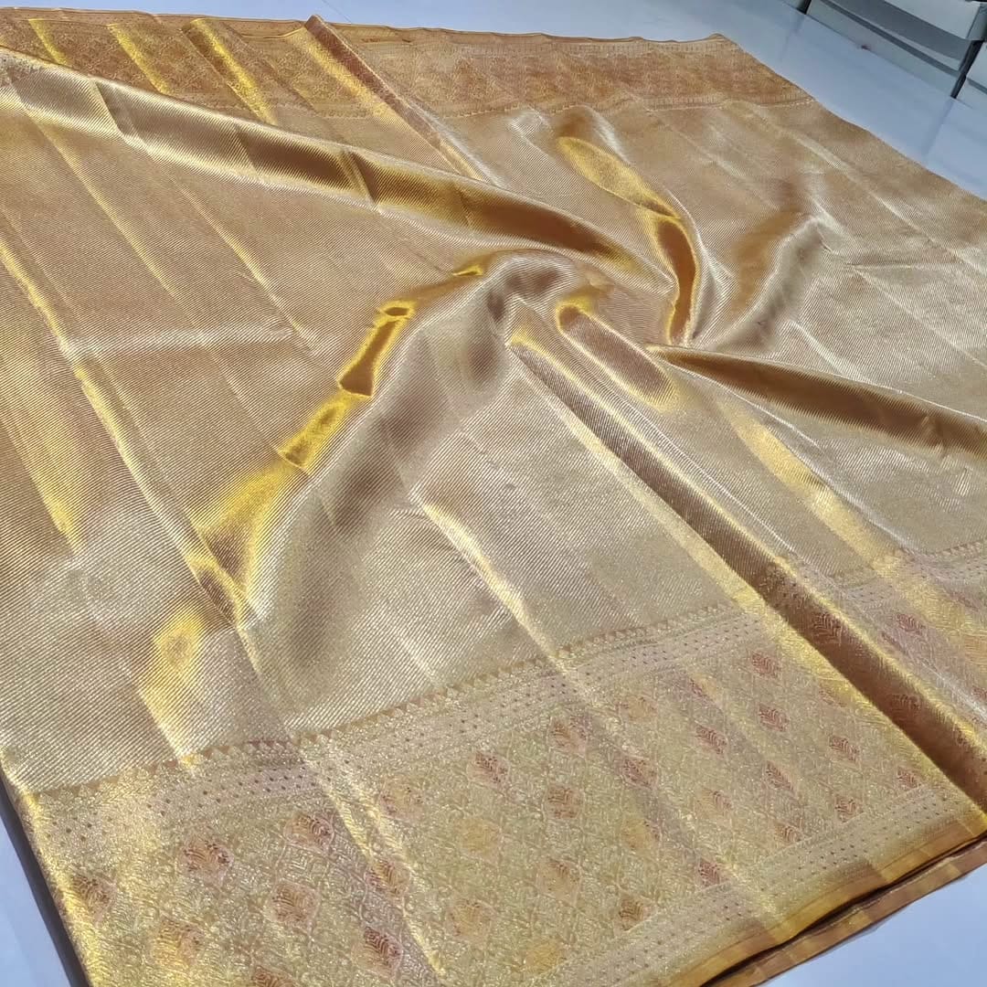 Gold Kanchipuram Handloom Tissue Brocade Silk Saree