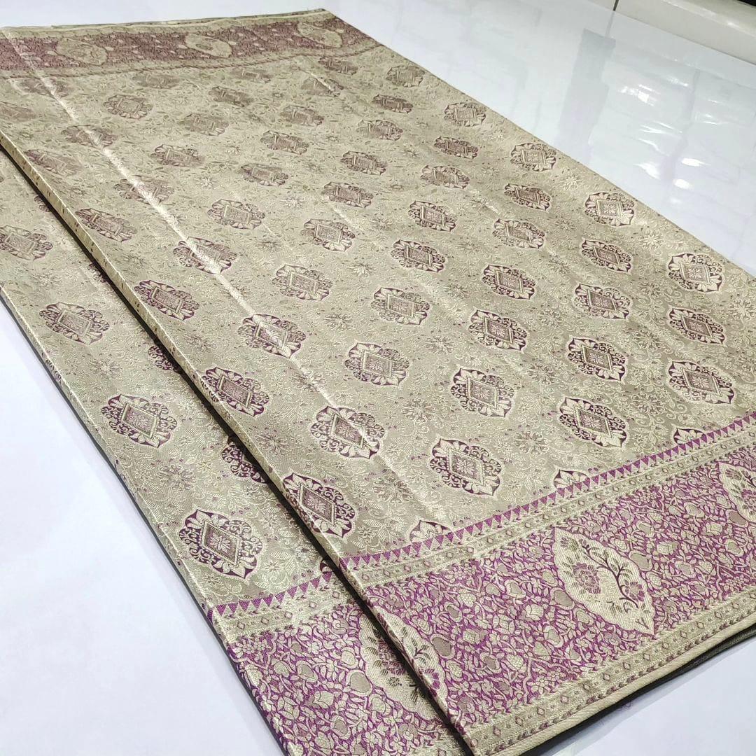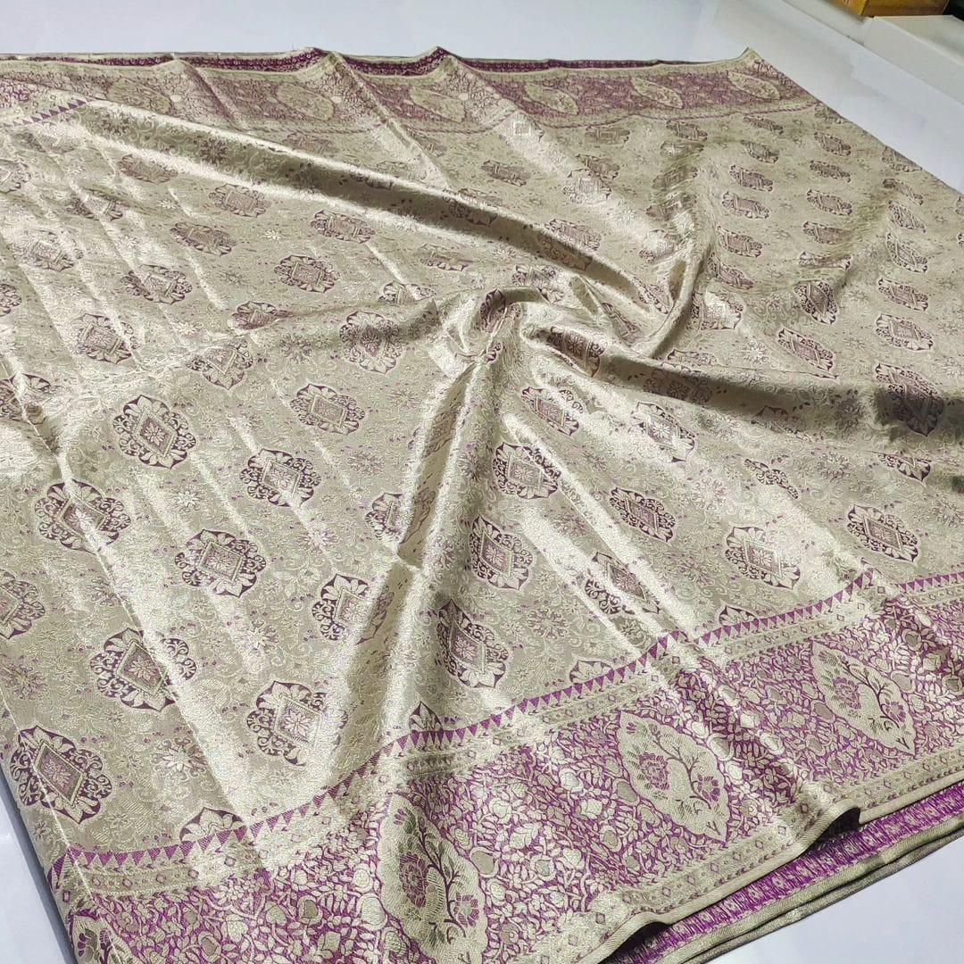 Beige Kanchipuram Handloom Tissue Brocade Meenakari Silk Saree