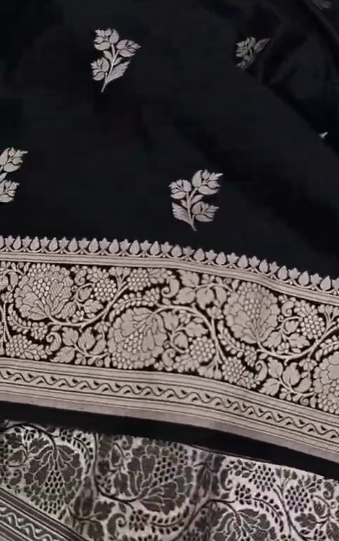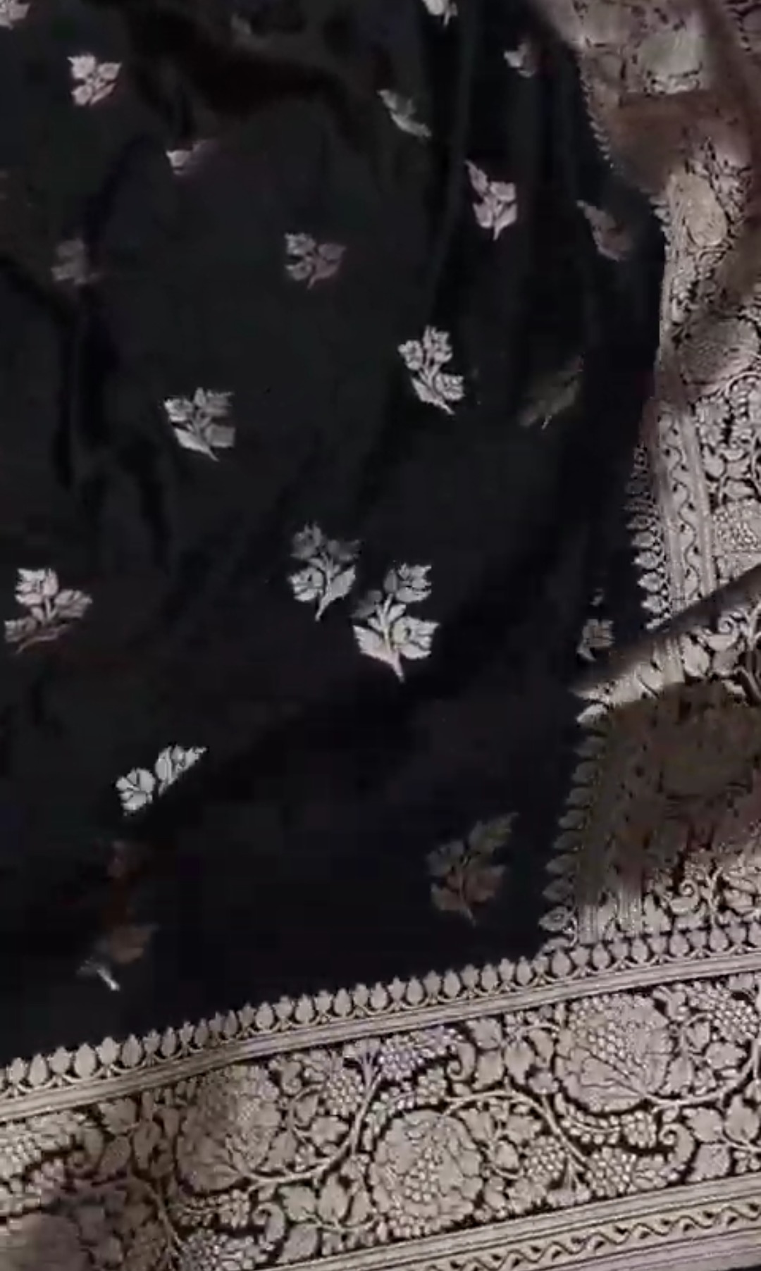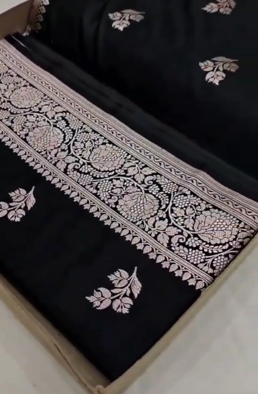 Midnight Blue Banarasi Mashru Soft Silk Saree