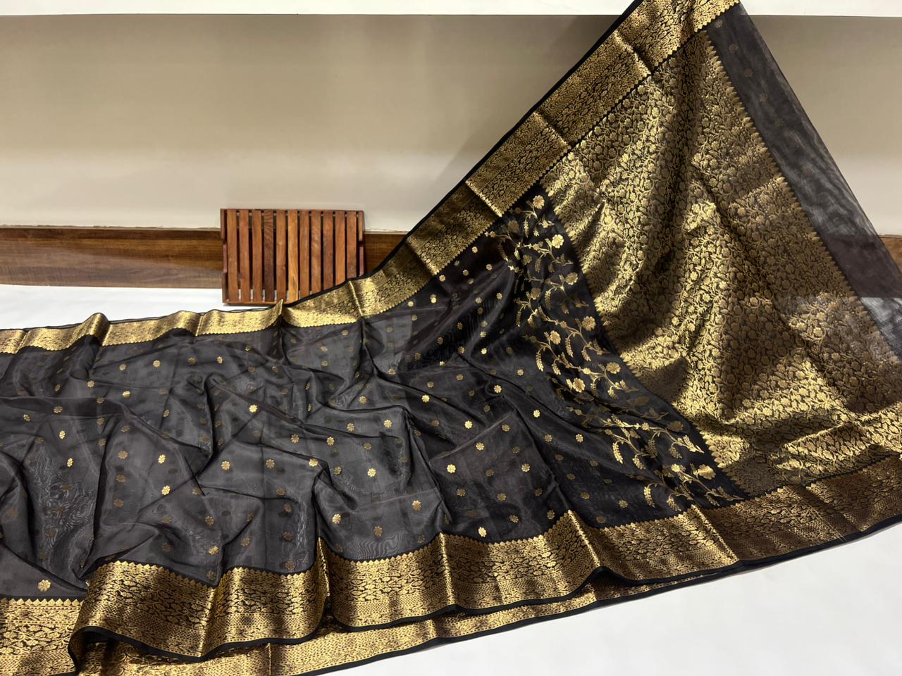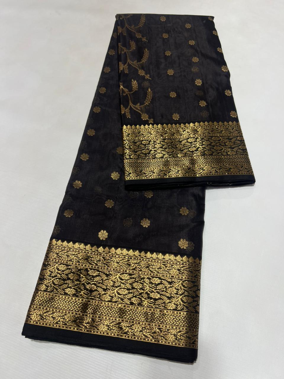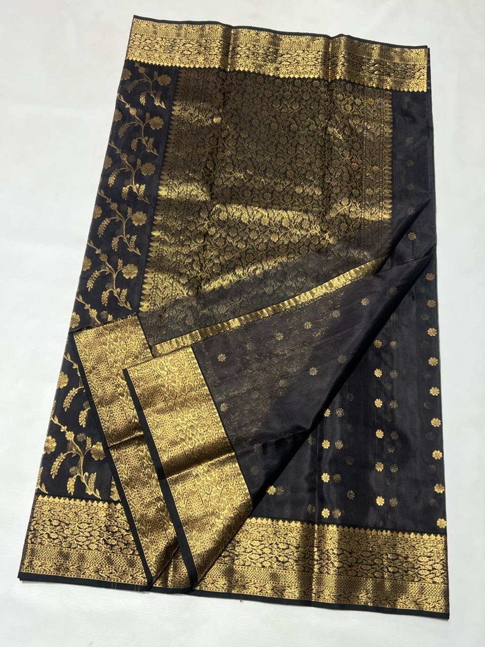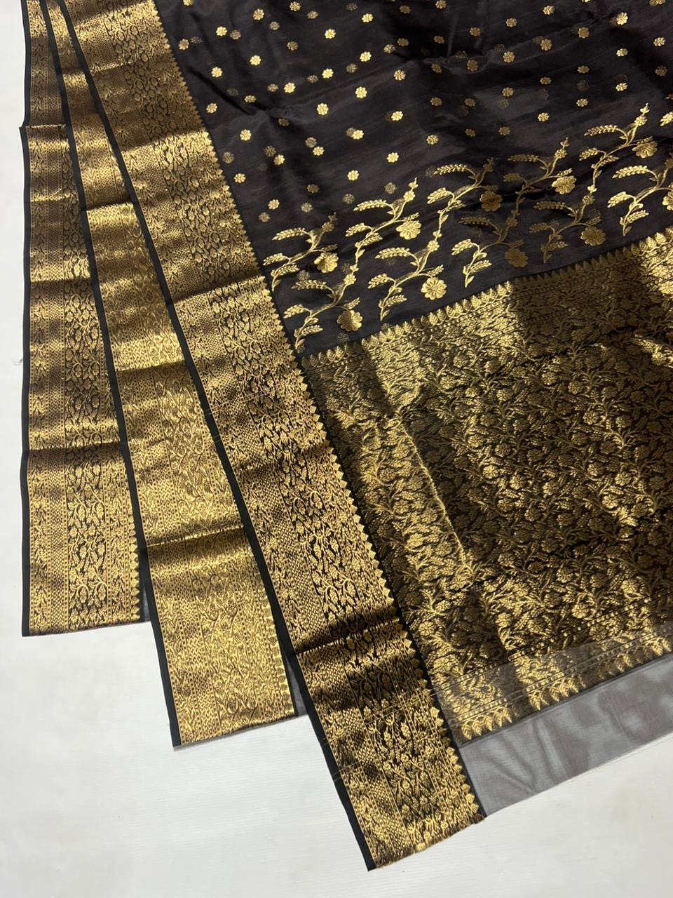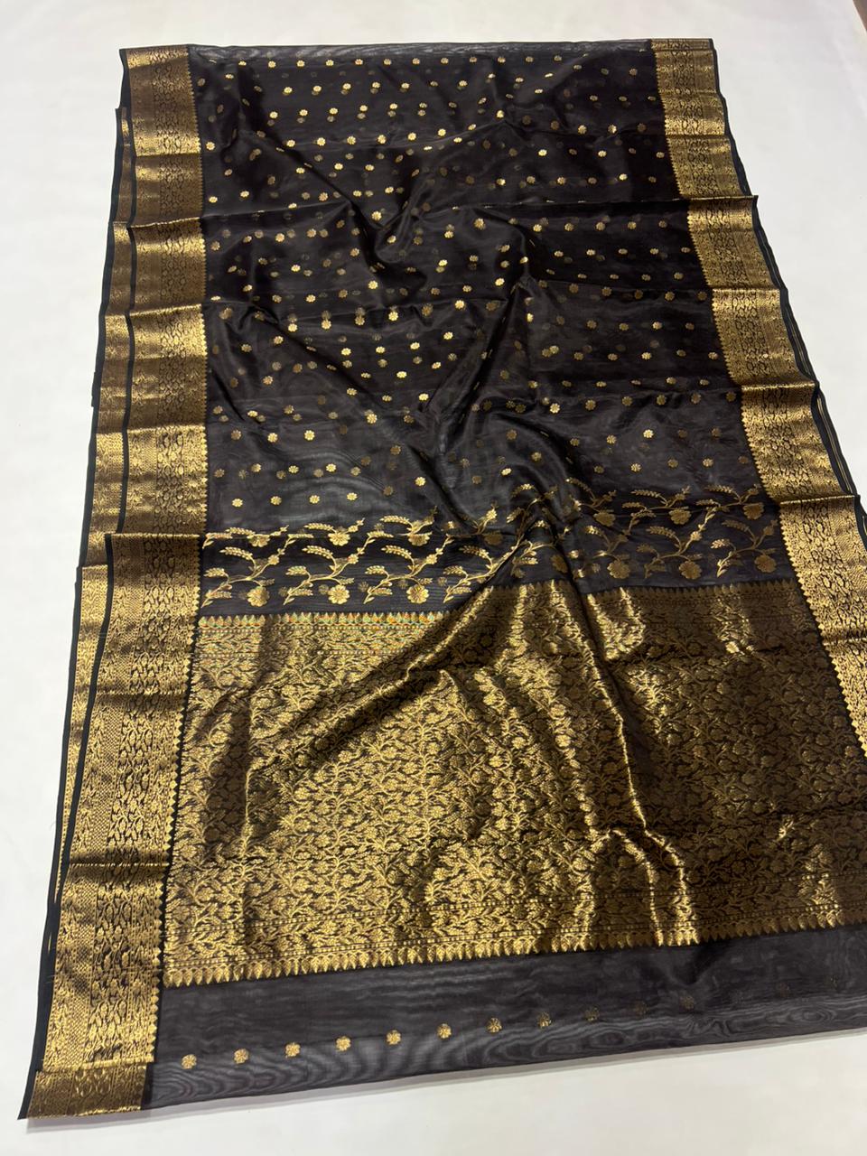 Black Chanderi Handloom Katan Silk Saree