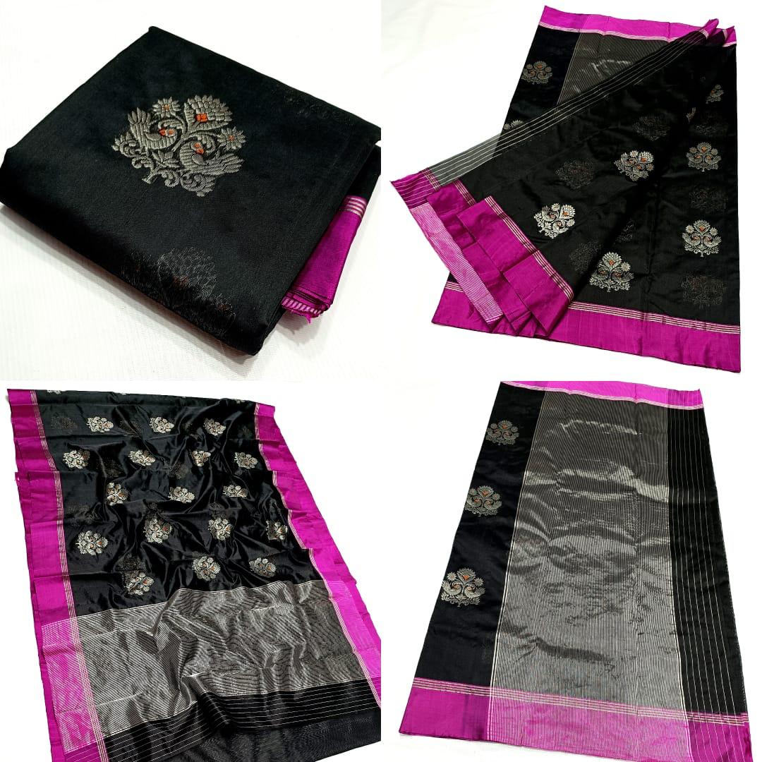 Black Chanderi Handloom Pattu Silk Meenakari Saree