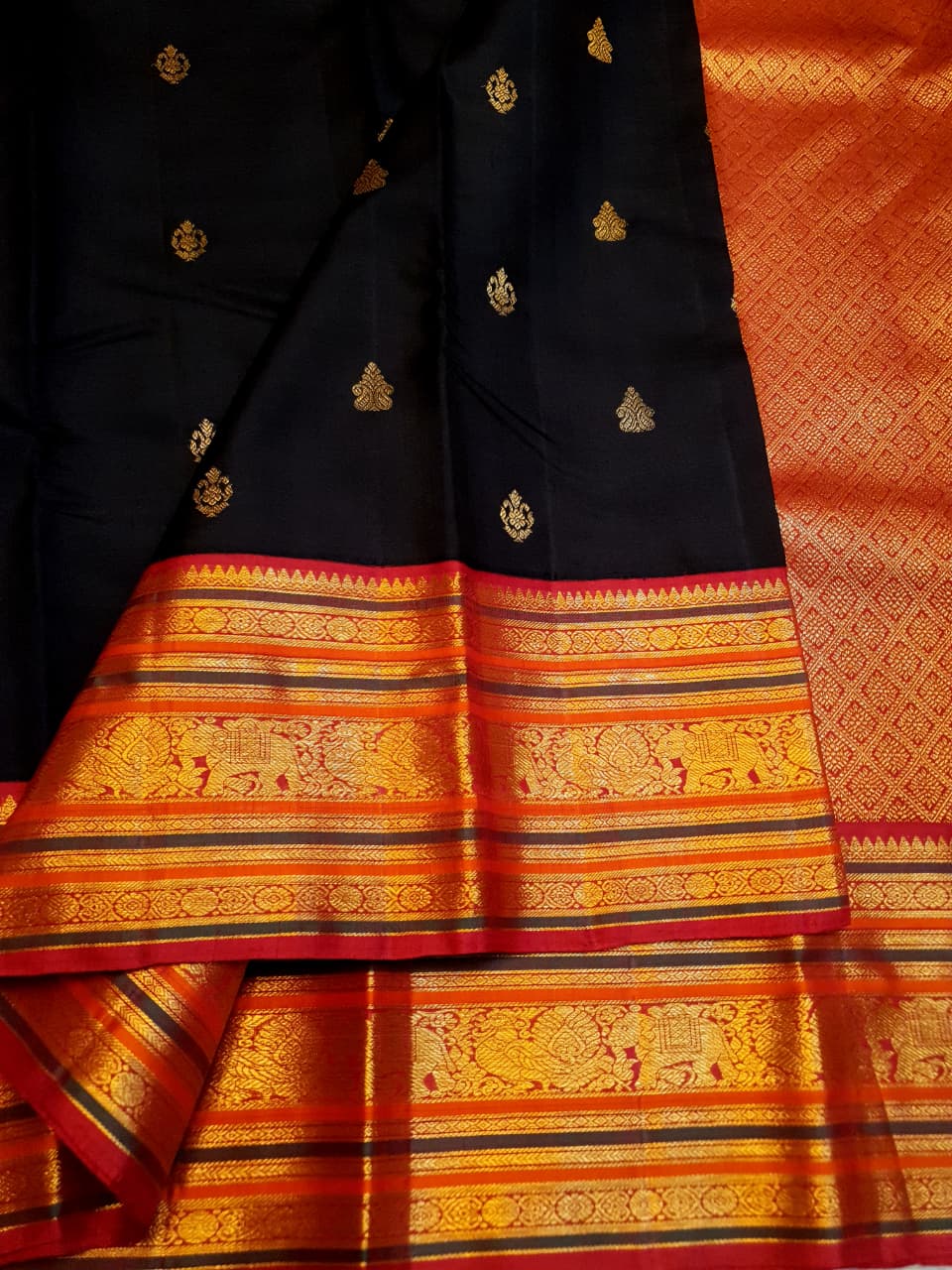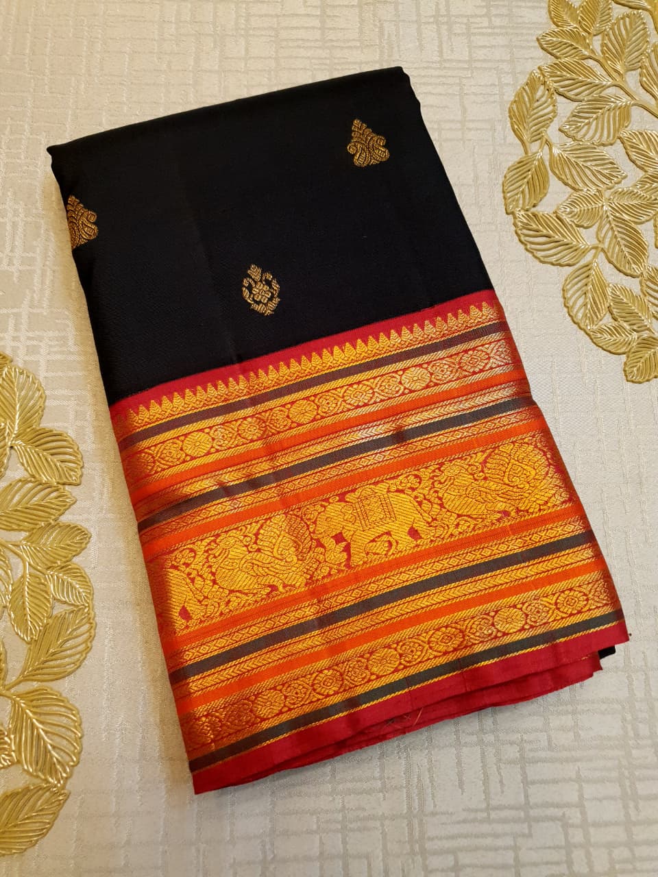 Black Kanchipuram Handloom 2G Gold Pattu Silk Saree