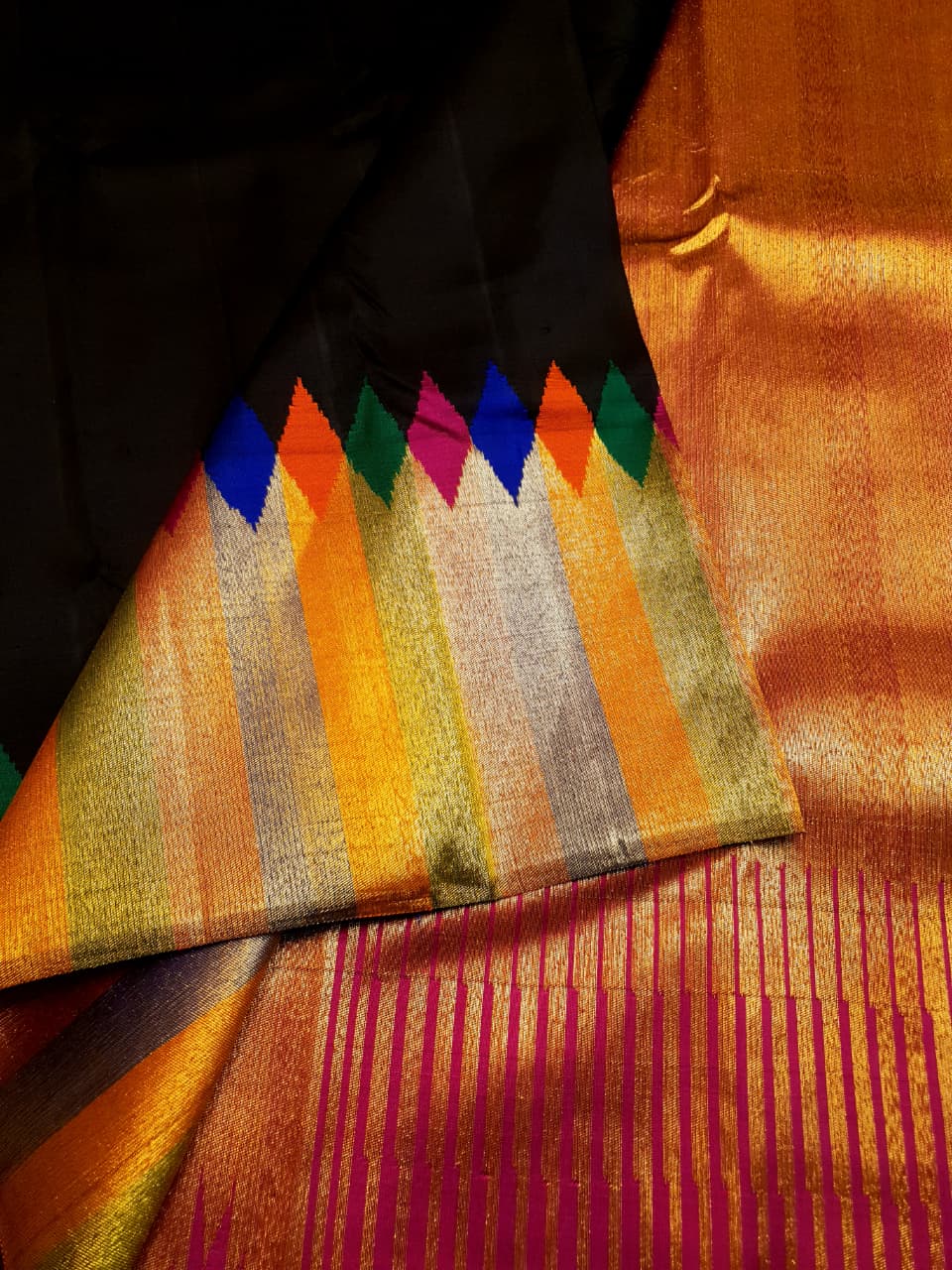 Black Kanchipuram Handloom 2G Gold Pattu Silk Temple Saree