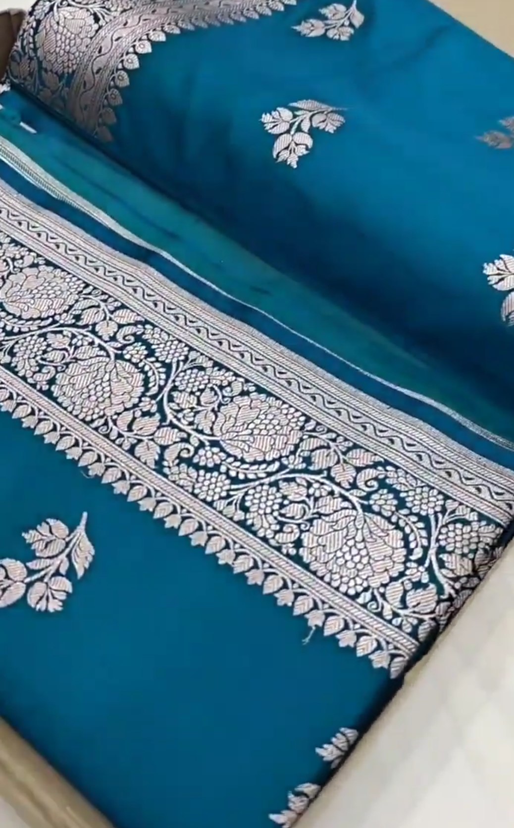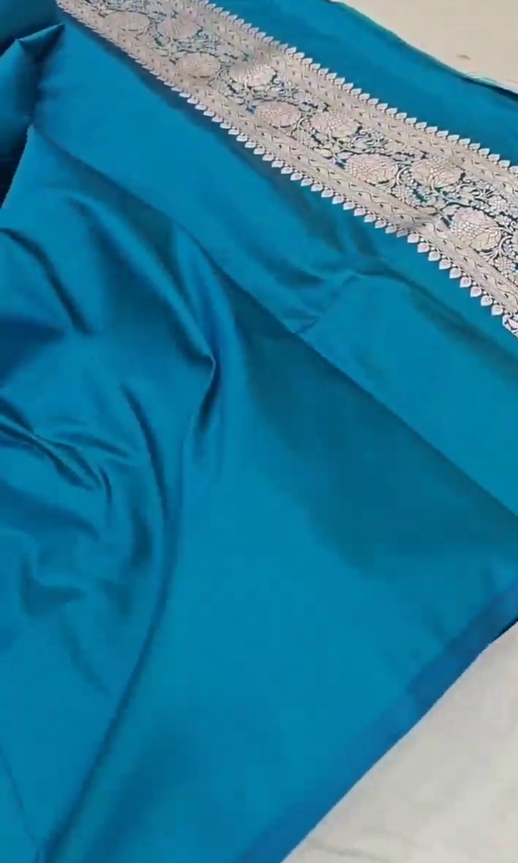 Deep Sky Blue Banarasi Mashru Soft Silk Saree