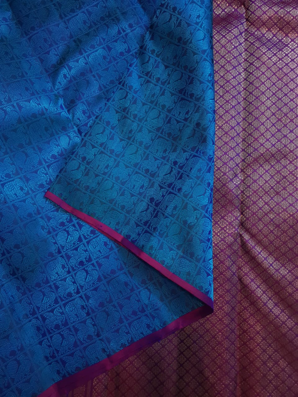 Blue Kanchipuram Handloom 3G Pure Gold Pattu Silk Saree