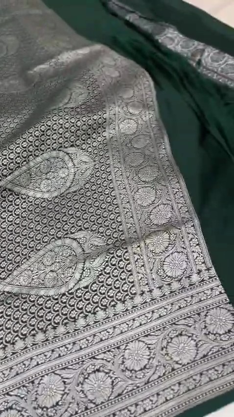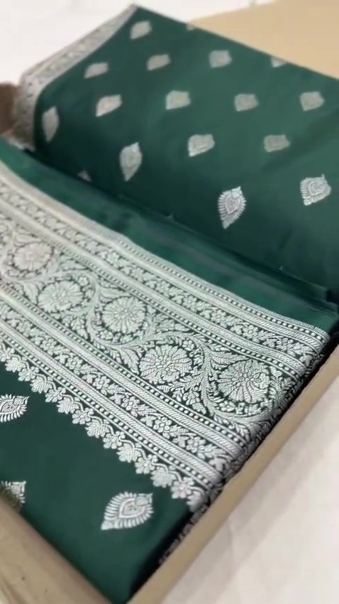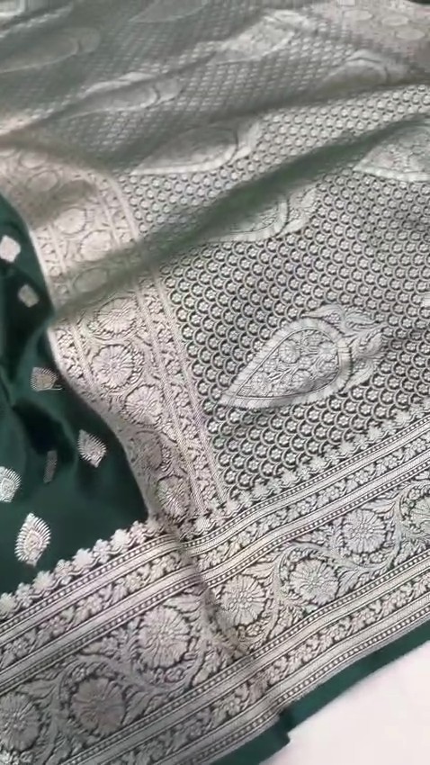 Bottle Green Banarasi Mashru Soft Silk Saree
