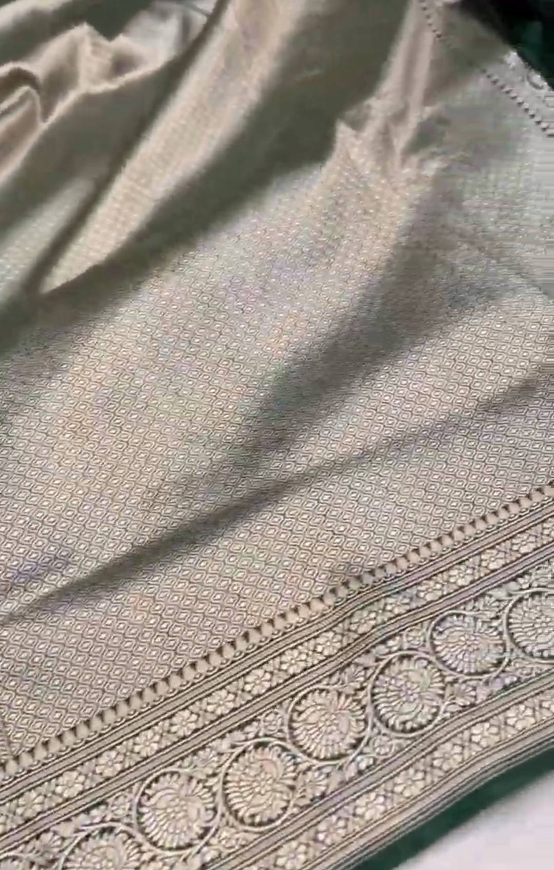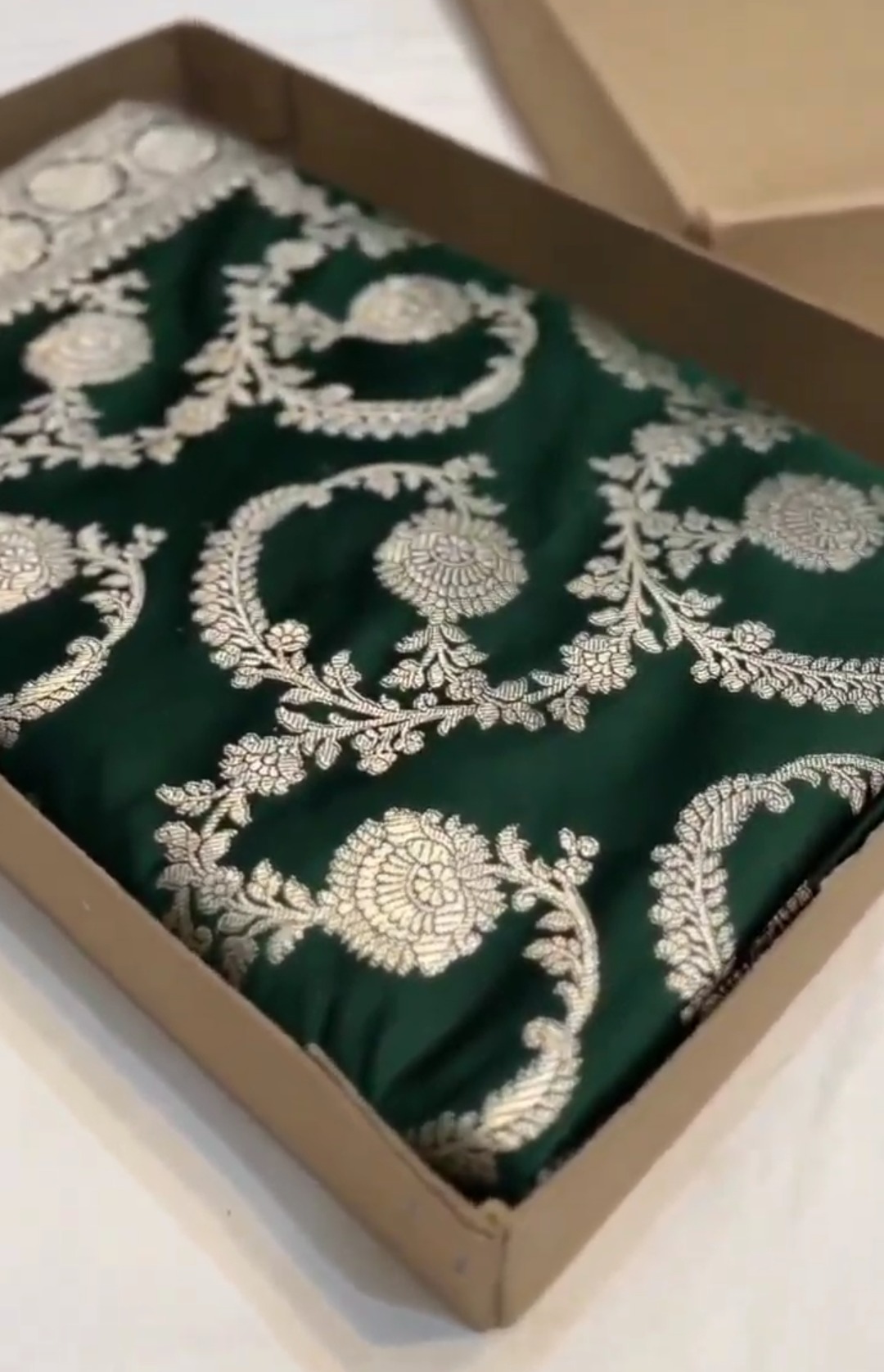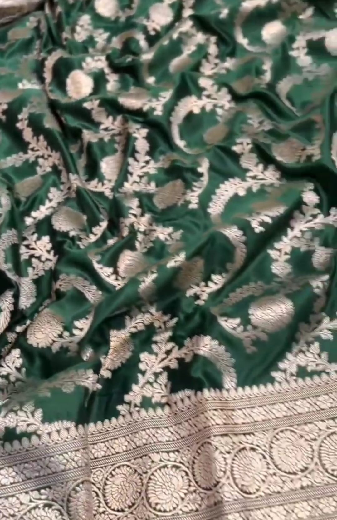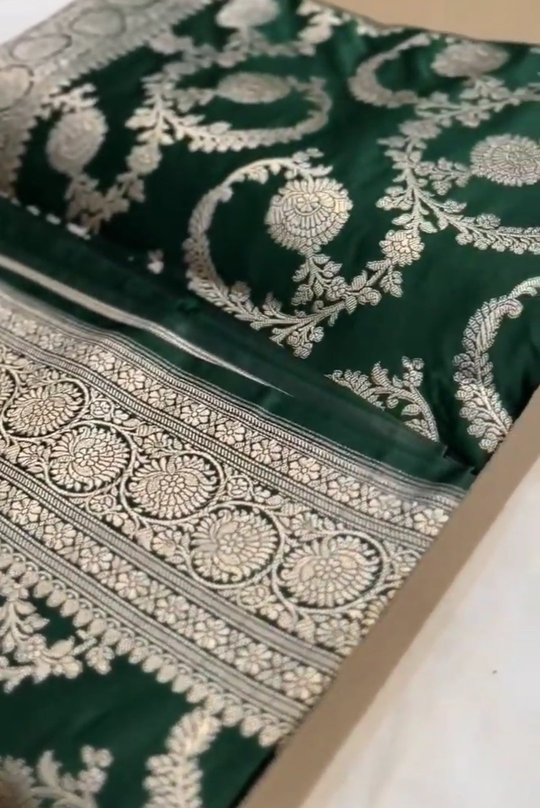 Bottle Green Banarasi Mashru Soft Silk Saree