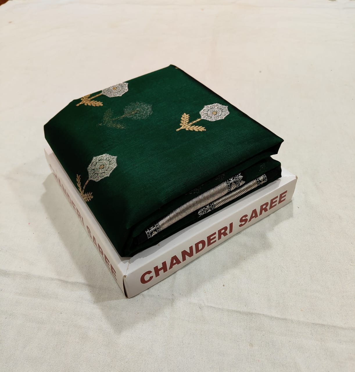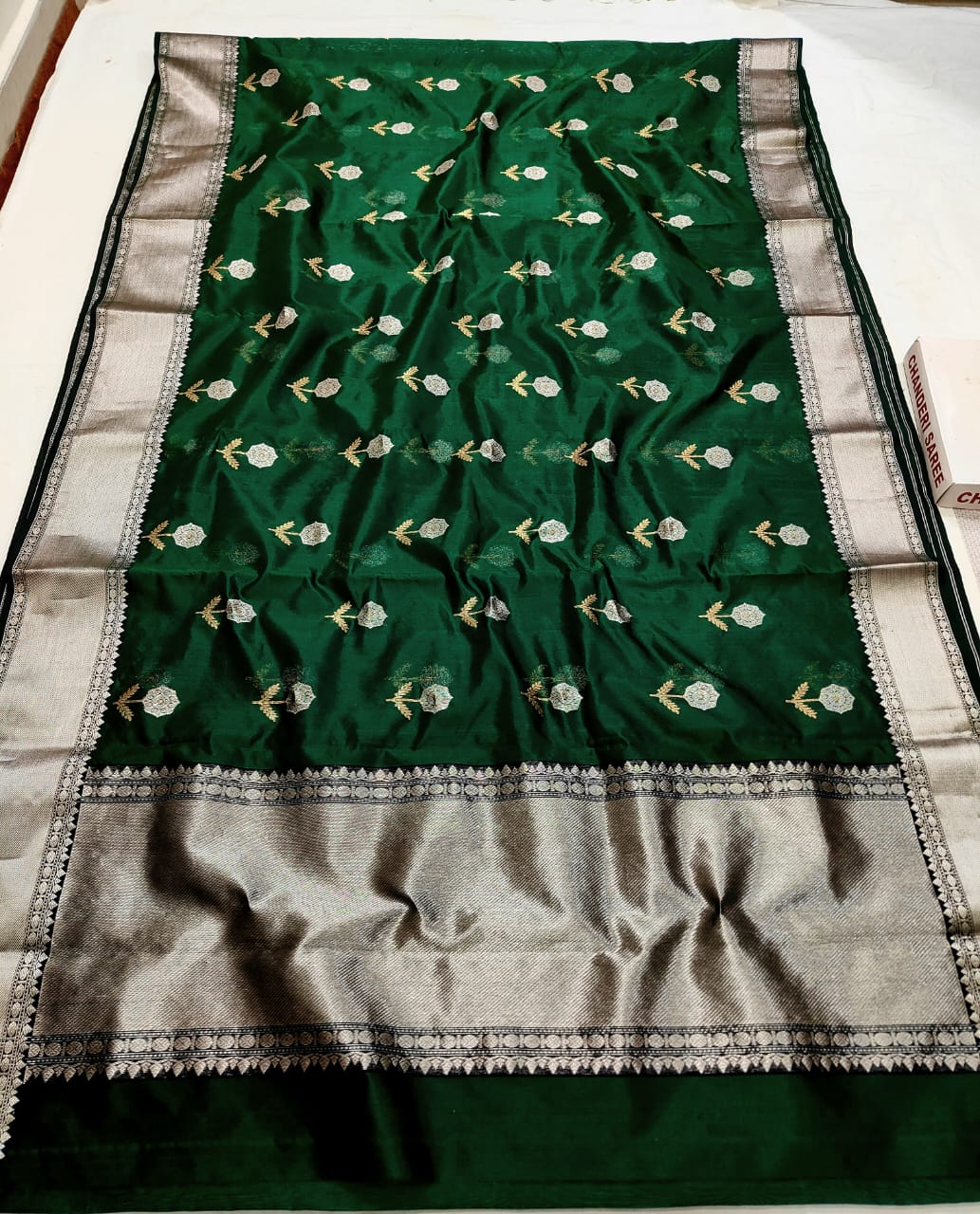 Bottle Green Chanderi Handloom Pattu Silk Meenakari Saree