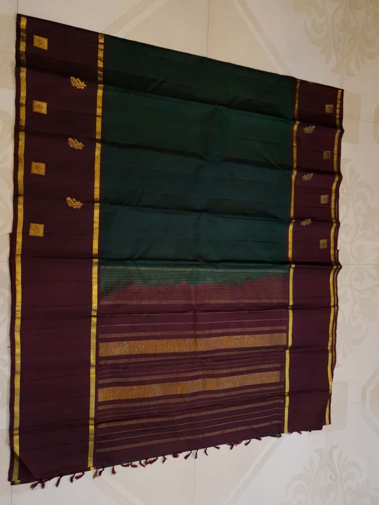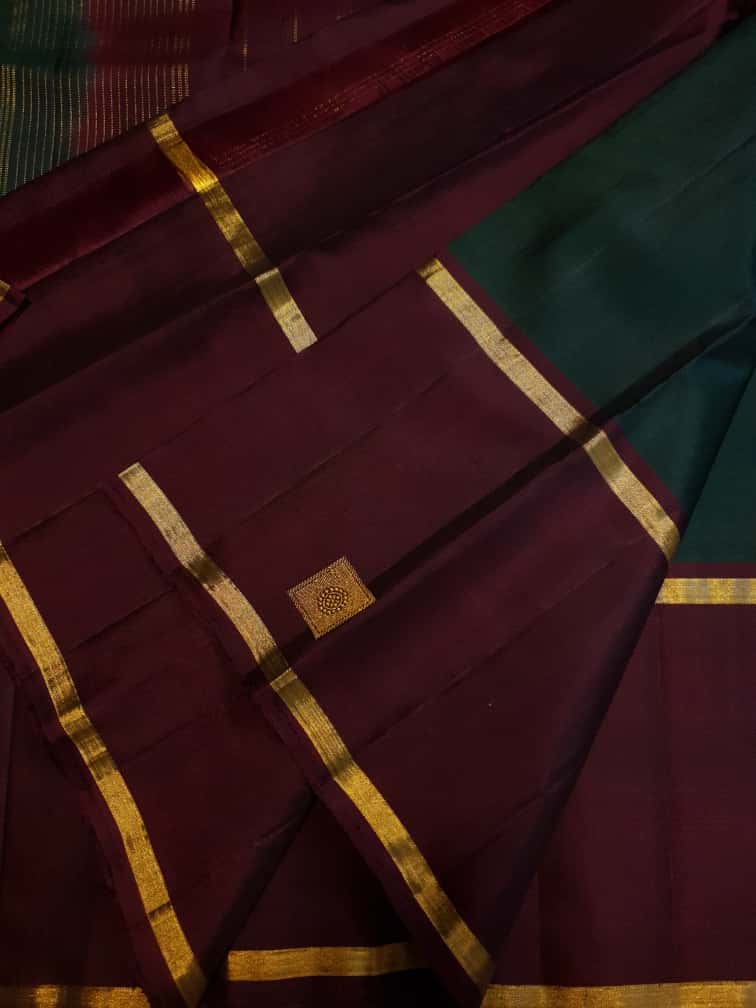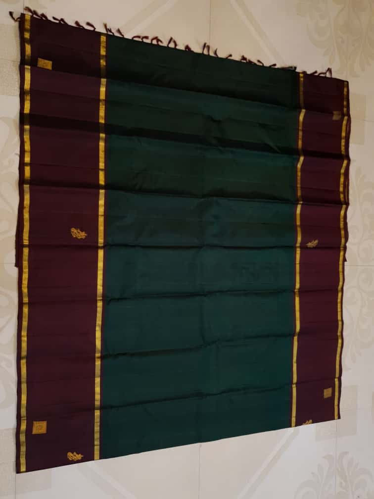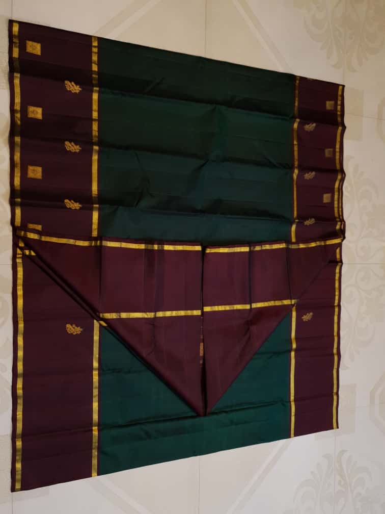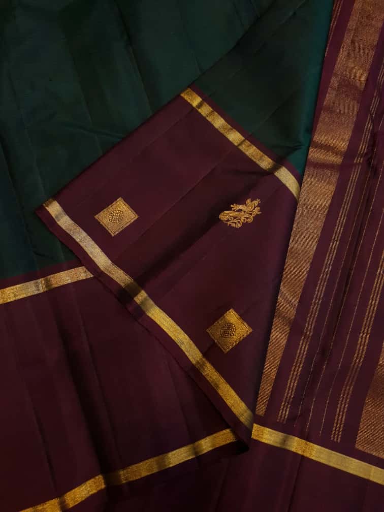 Bottle Green Kanchipuram Handloom 2G Pattu Silk Saree