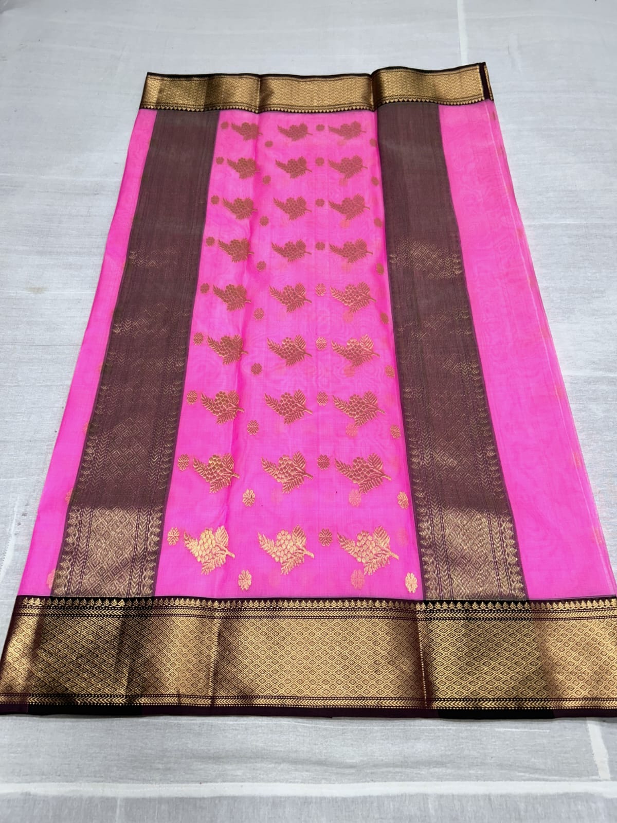Hot Pink Chanderi Handloom Katan Silk Nakshi Saree