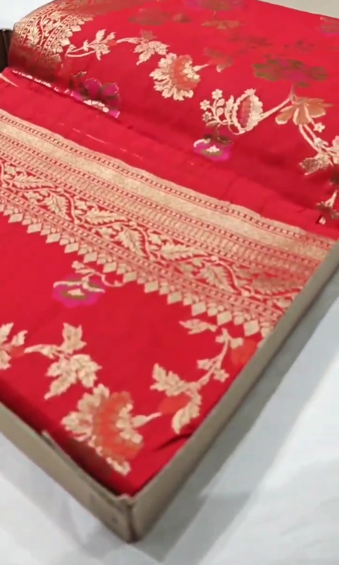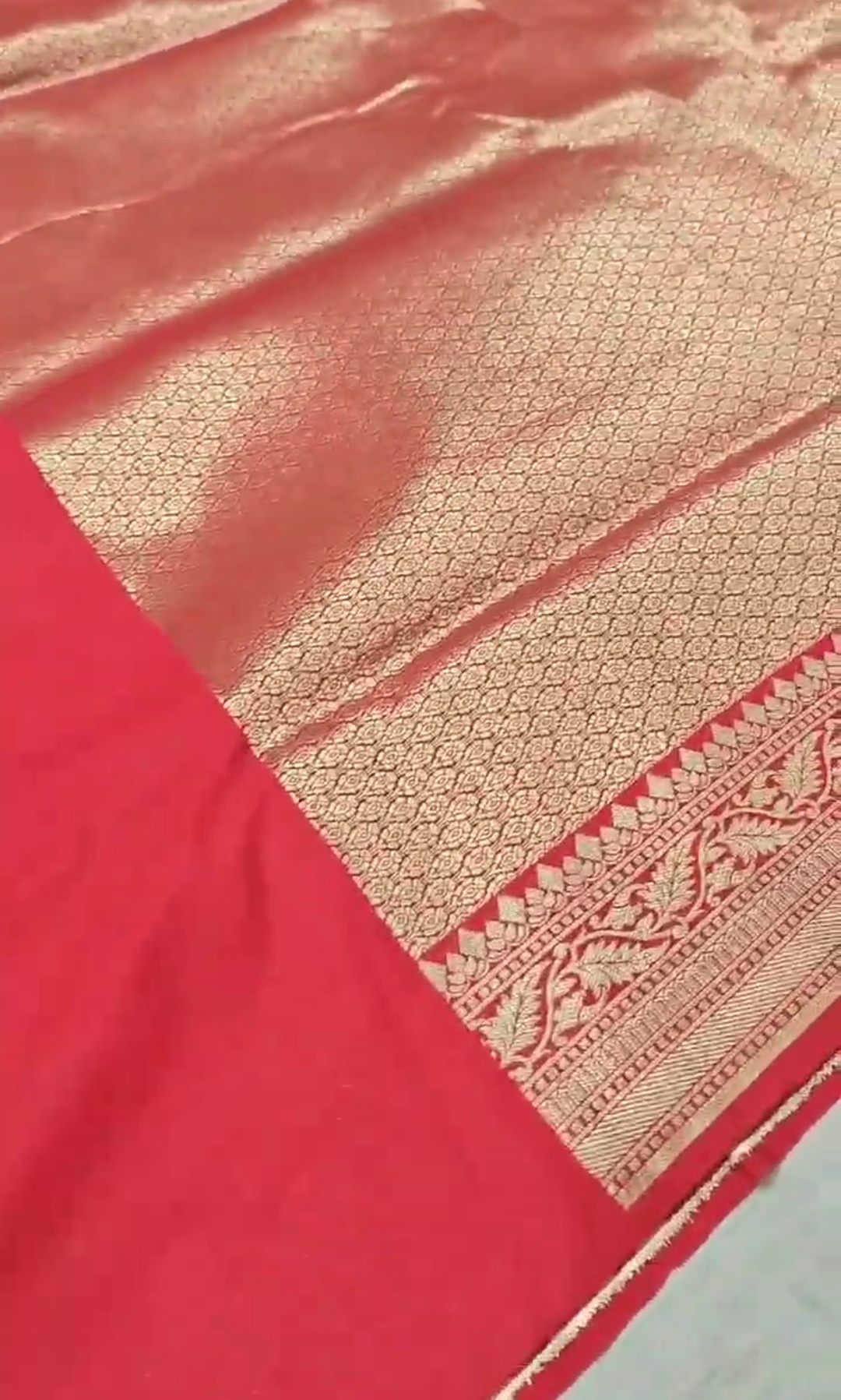 Rustic Red Banarasi Semi Katan Silk Tanchoi Brocade Saree