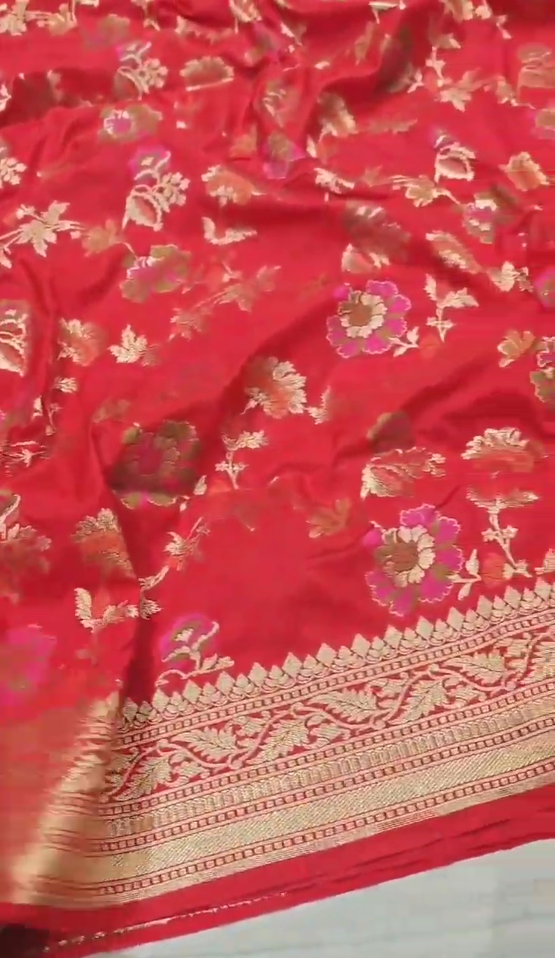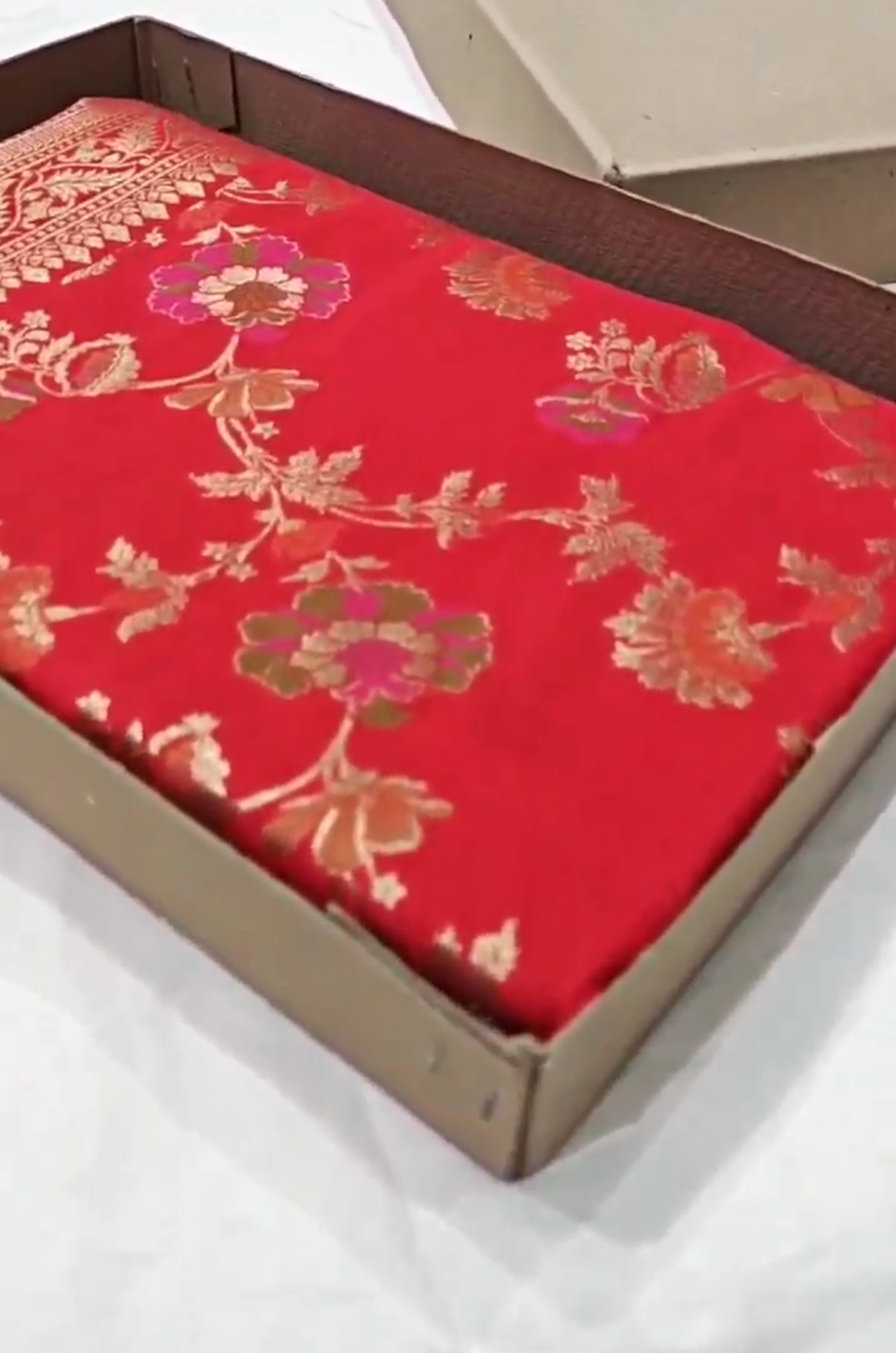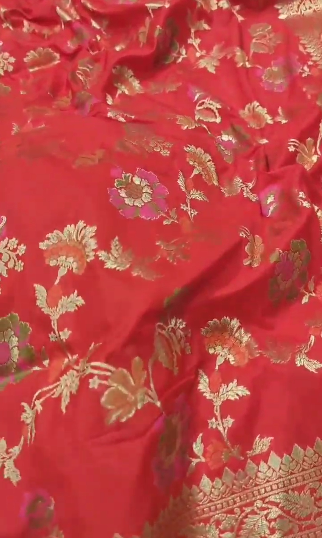 Bright Red Banarasi Soft Katan Silk Tilfi Meenakari Saree
