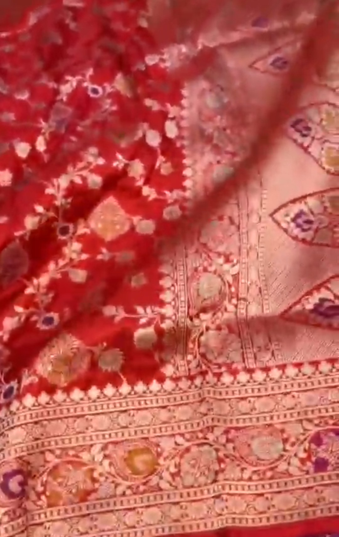 Red Banarasi Handloom Katan Silk Rangkaat Meenakari Saree