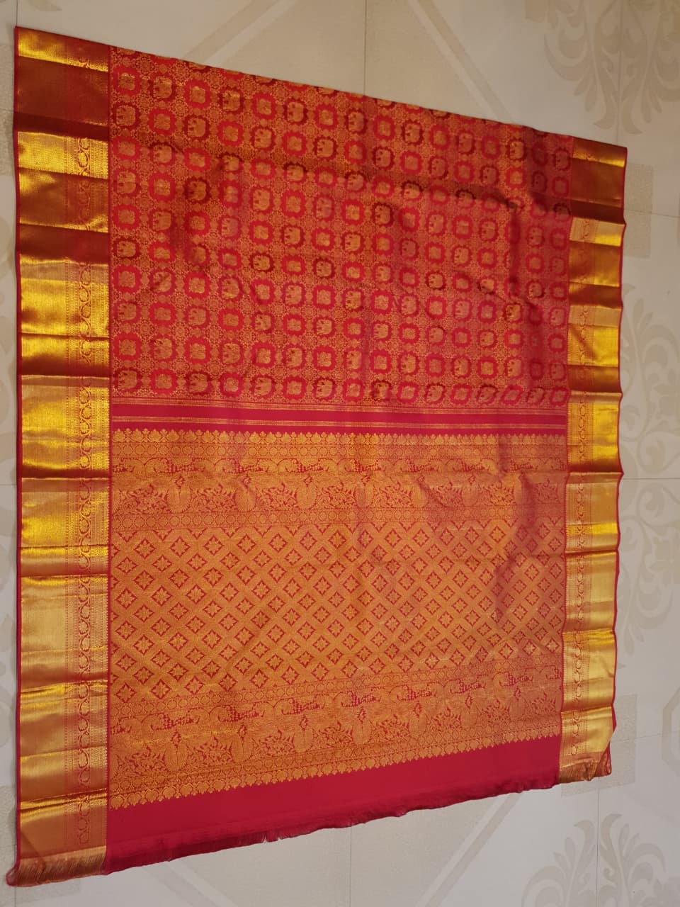 Orange Red Kanchipuram Handloom 2G Pure Gold Vairaoosi Silk Saree