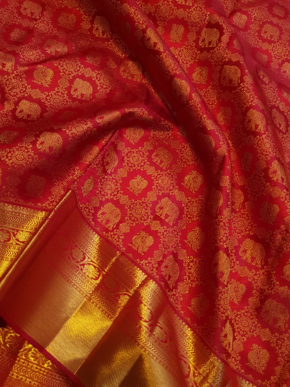 Chilly Red Kanchipuram Handloom 2G Gold Pattu Silk Saree