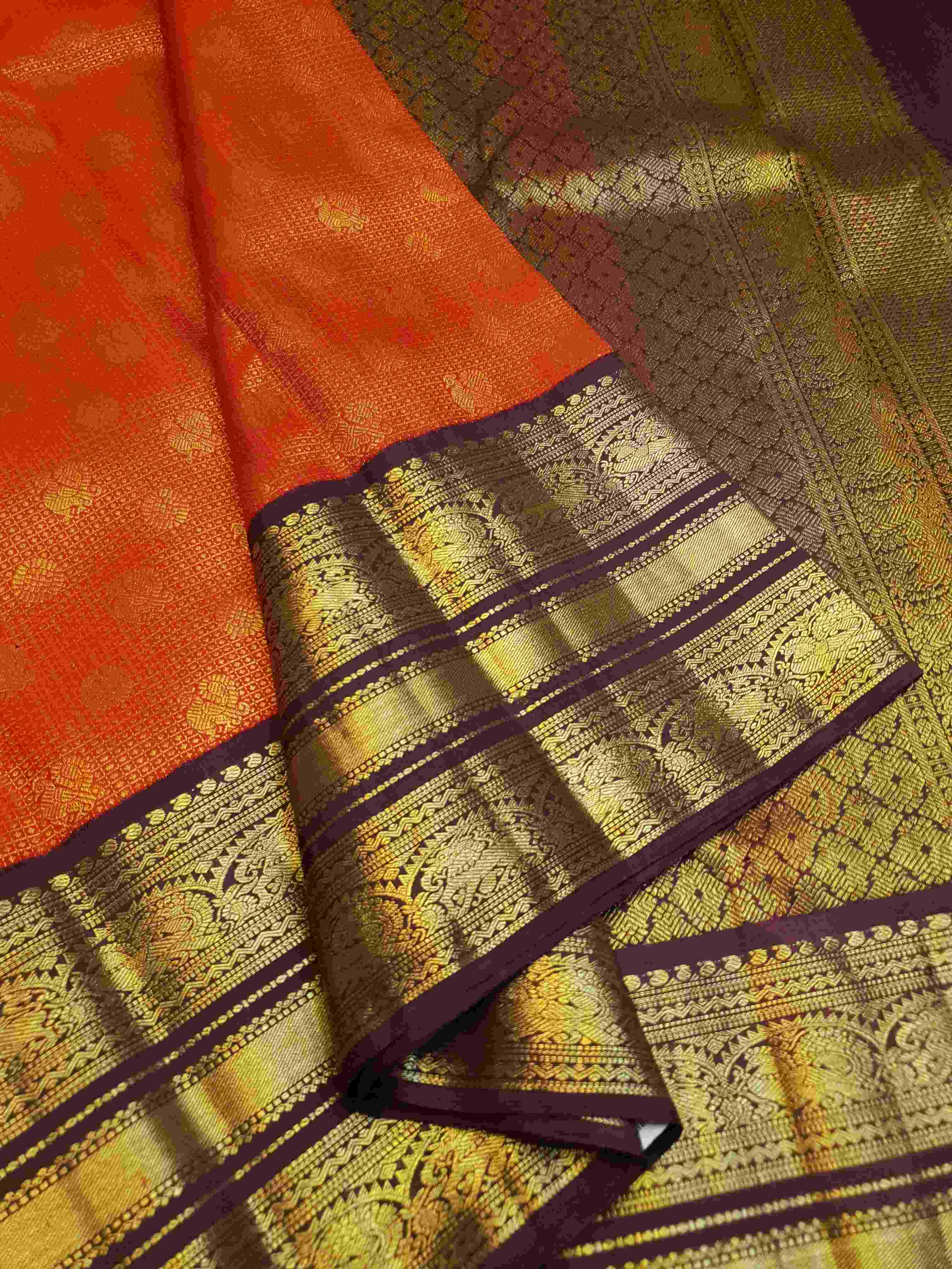 Saffron Kanchipuram Handloom 2G Gold Pattu Silk Saree