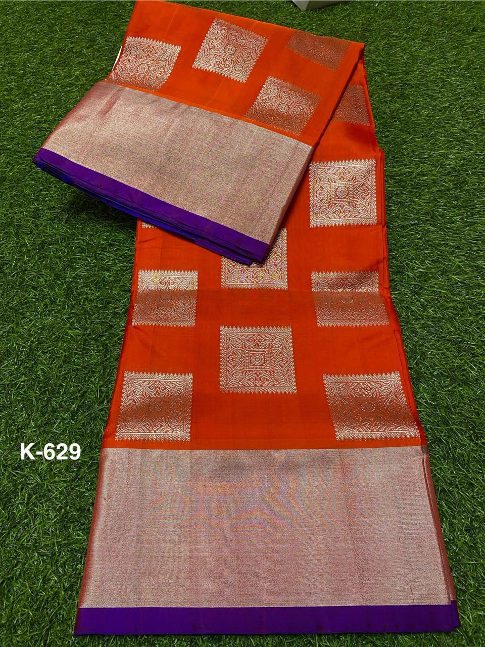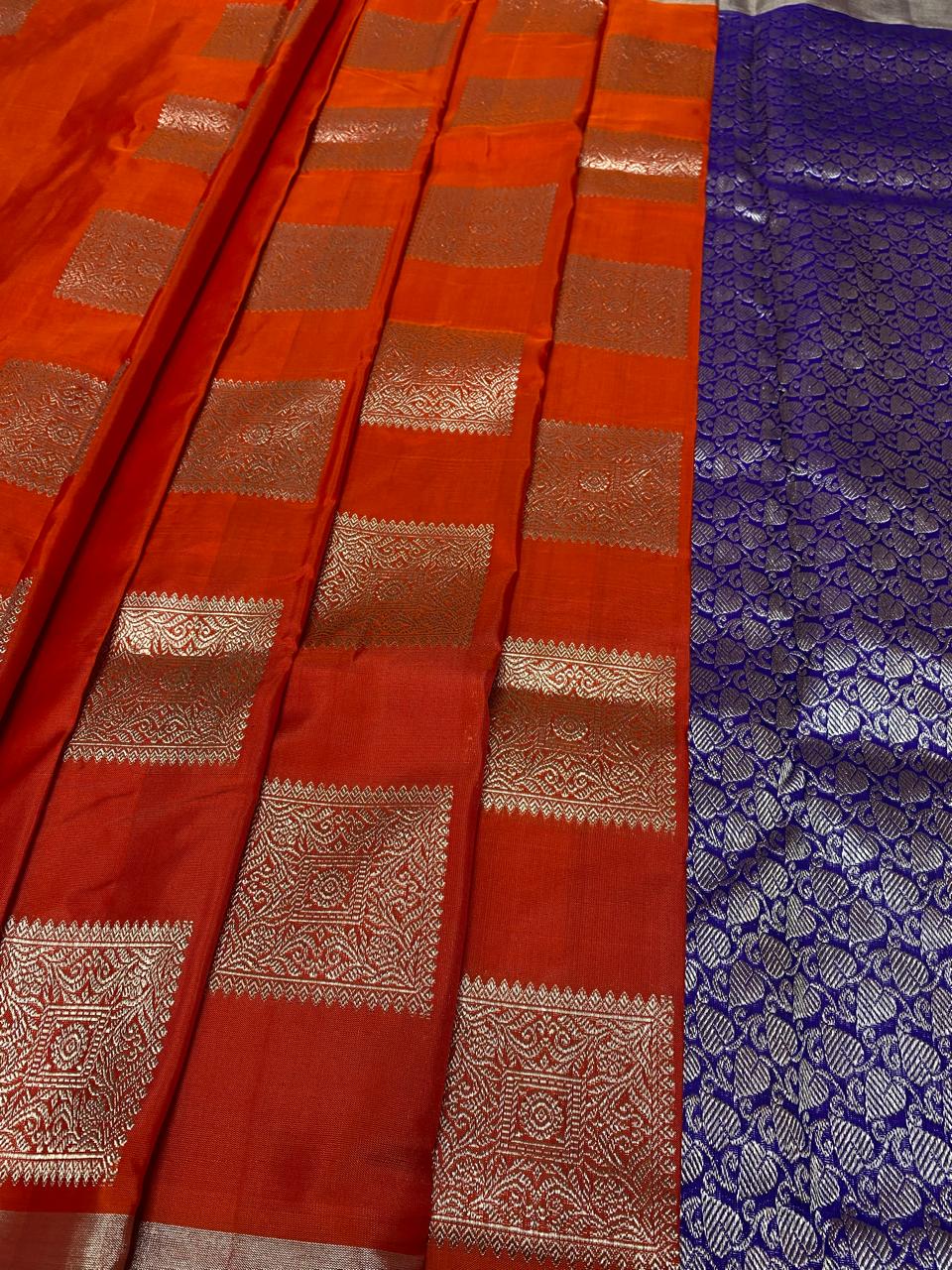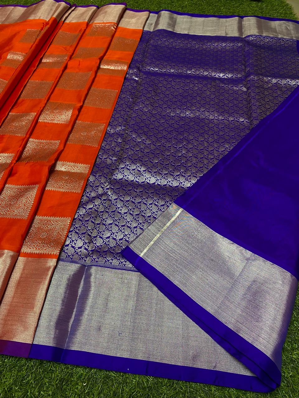 Dual Tone Orange Venkatagiri Handloom Pattu Silk Saree