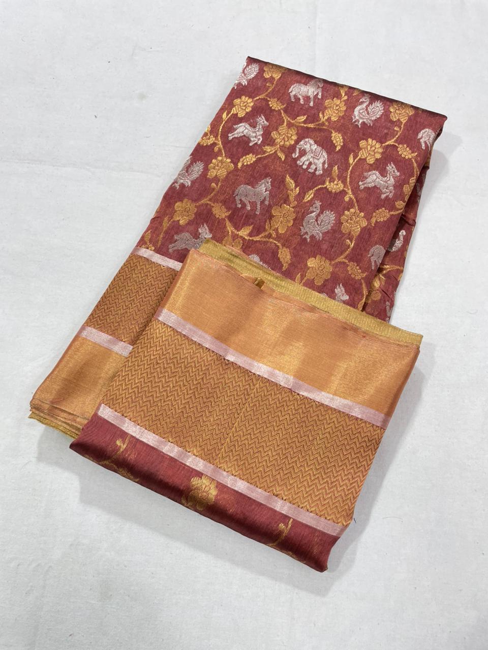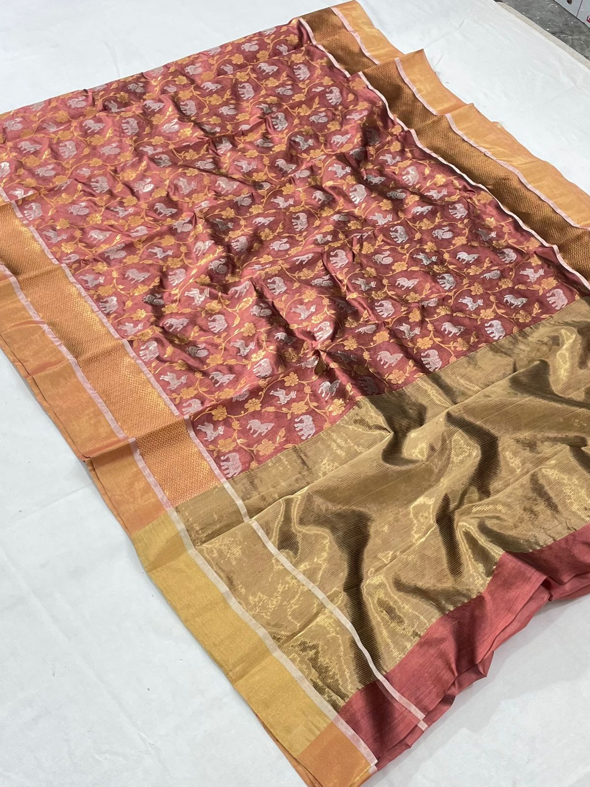 Rosy Brown Chanderi Handloom Pattu Silk Meenakari Saree