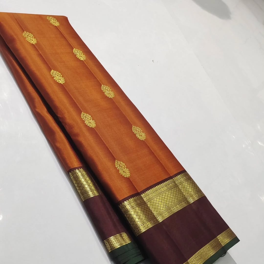 Orange Kanchipuram Handloom 2G Gold Pattu Silk Saree
