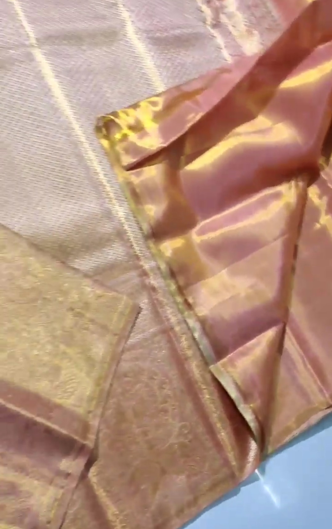 Baby Pink Kanchipuram Handloom Tissue Brocade Silk Saree