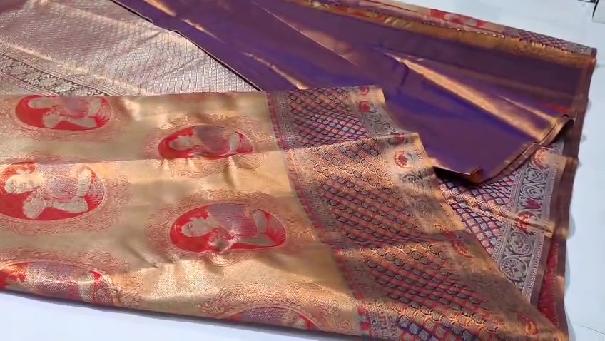 Purple Kanchipuram Handloom Resham Brocade Meenakari Silk Saree