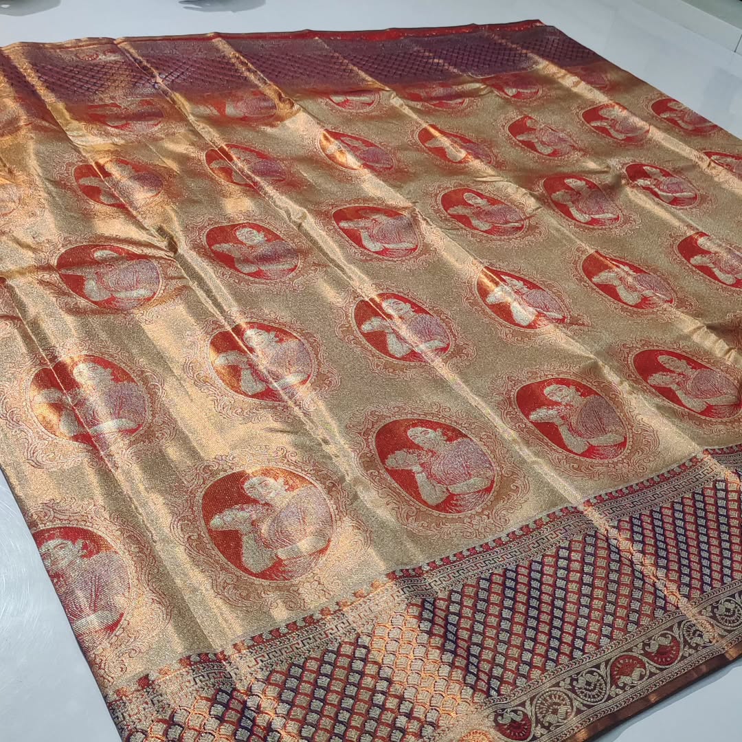 Gold Kanchipuram Handloom Tissue Brocade Silk Saree