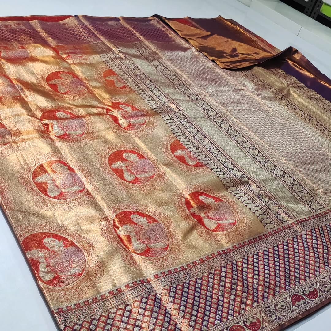 Dual Tone Plum Kanchipuram Handloom Meenakari Tissue Silk Saree