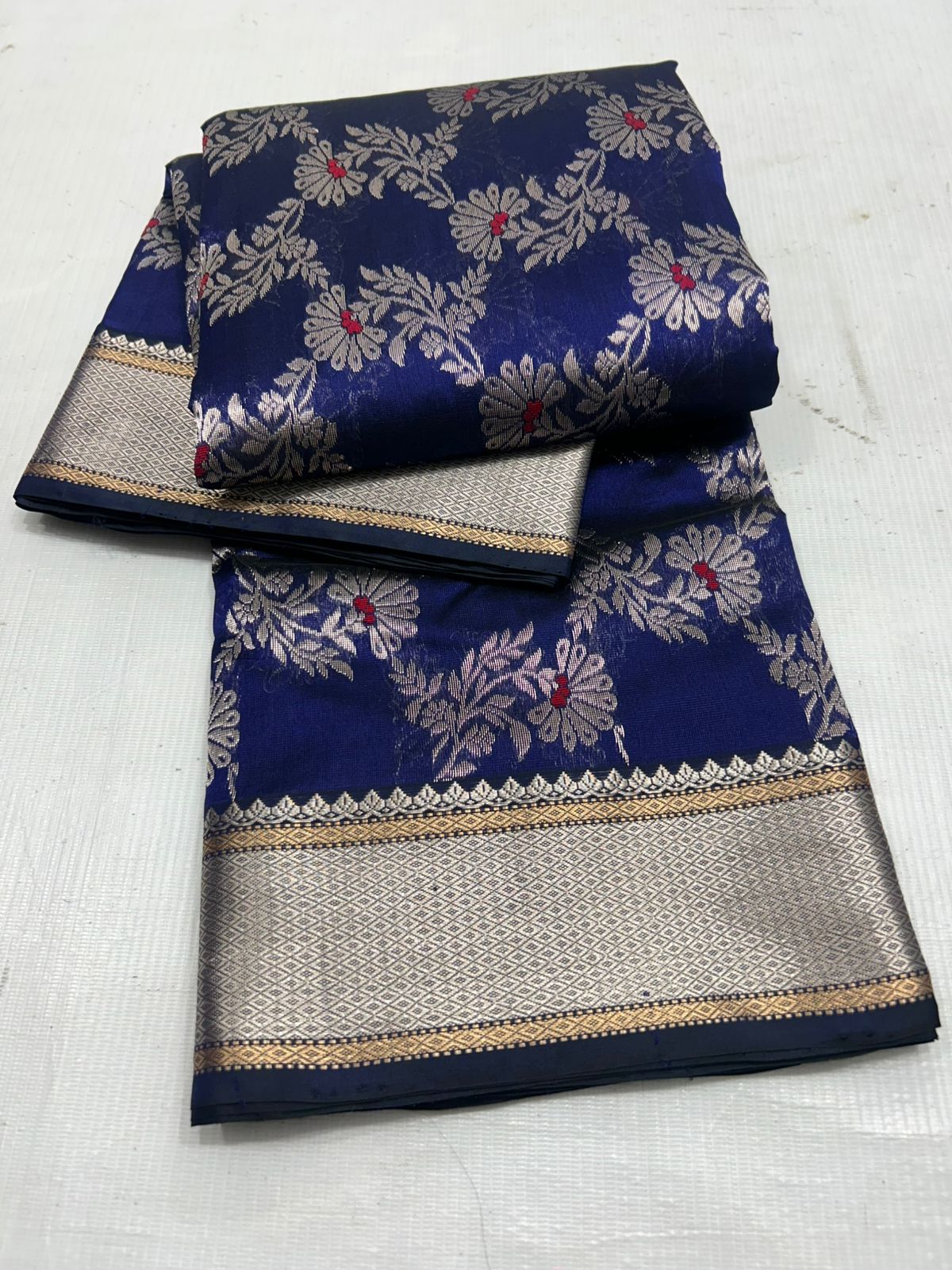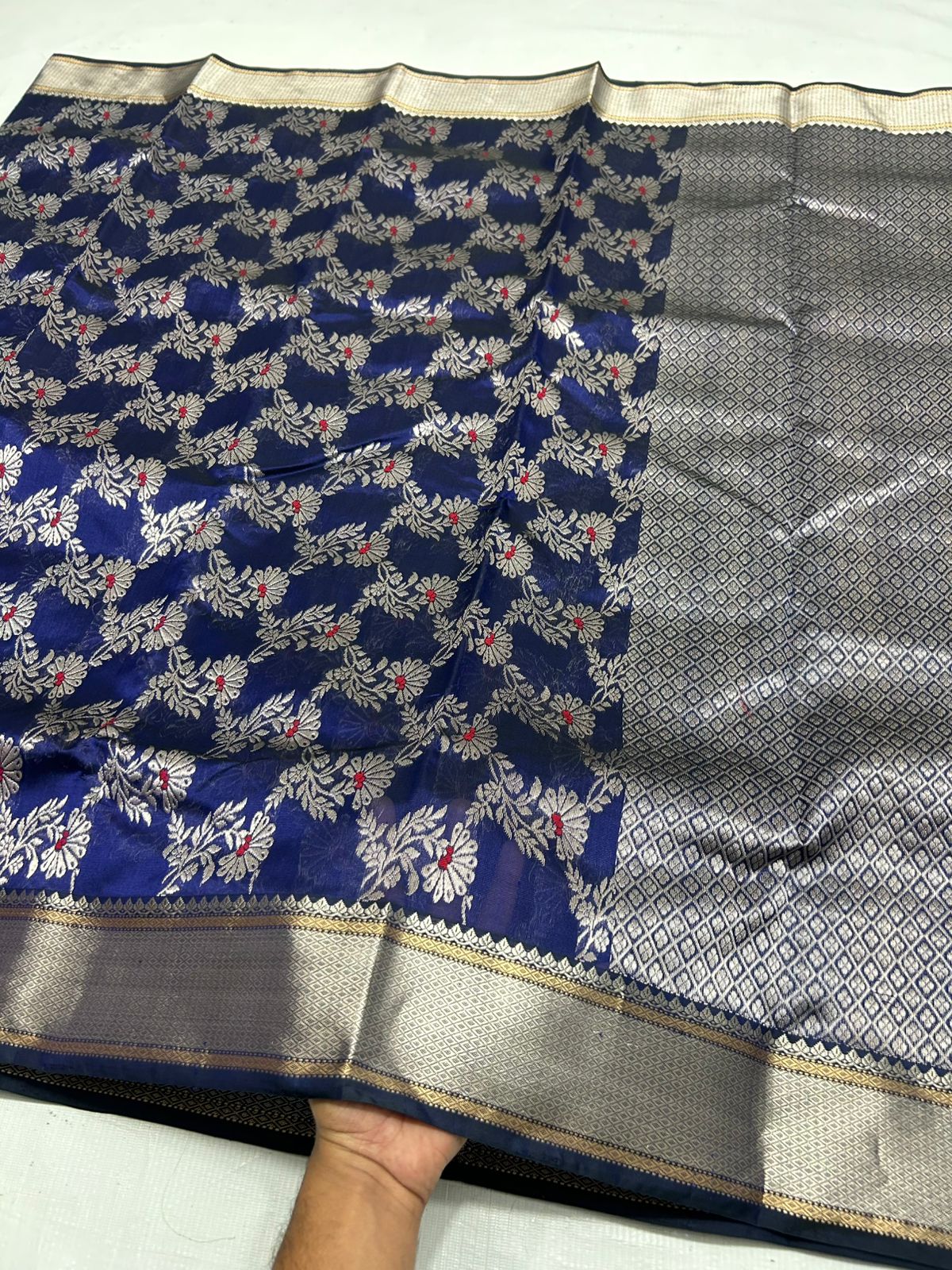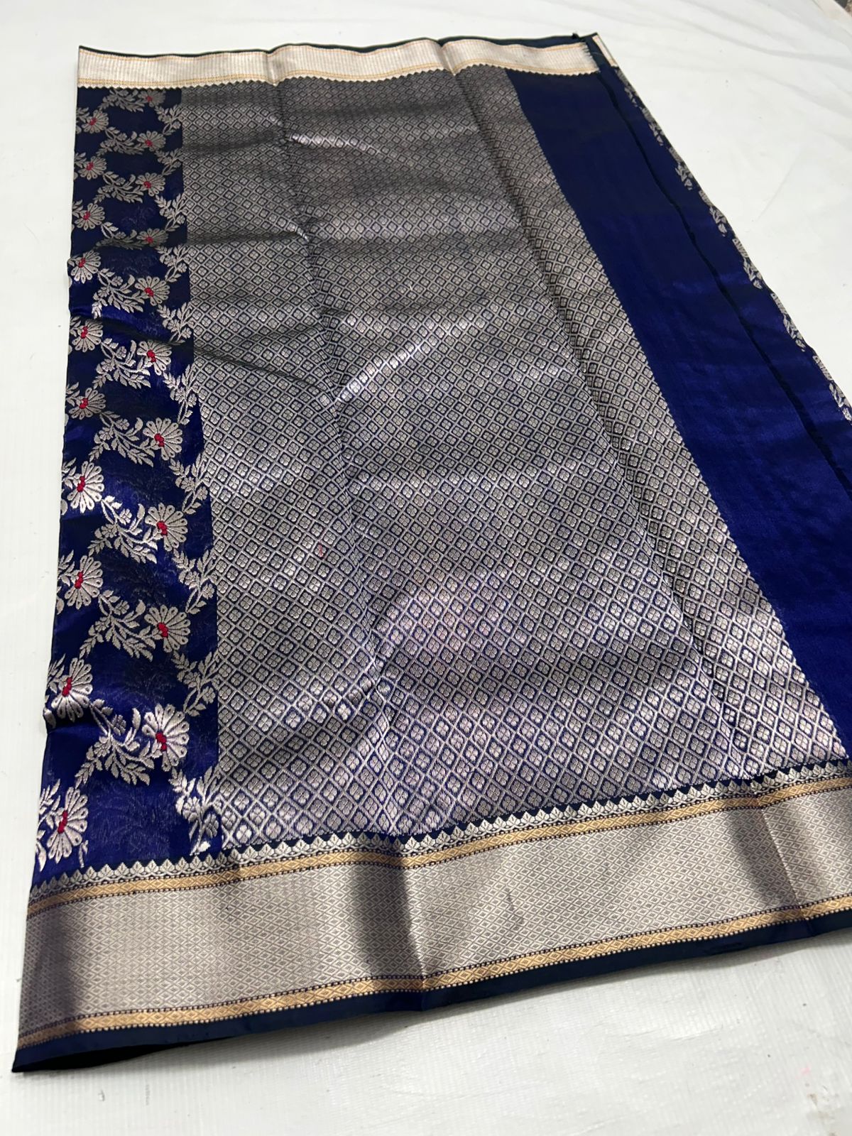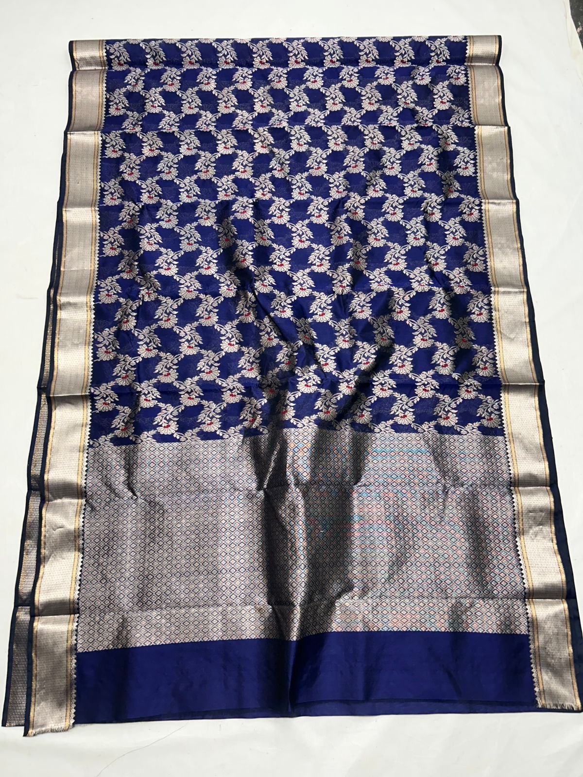 Dark Blue Chanderi Handloom Pattu Silk Sona Rupa Saree