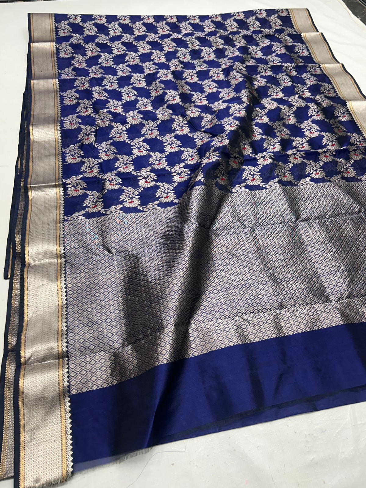 Dark Blue Chanderi Handloom Pattu Silk Meenakari Saree