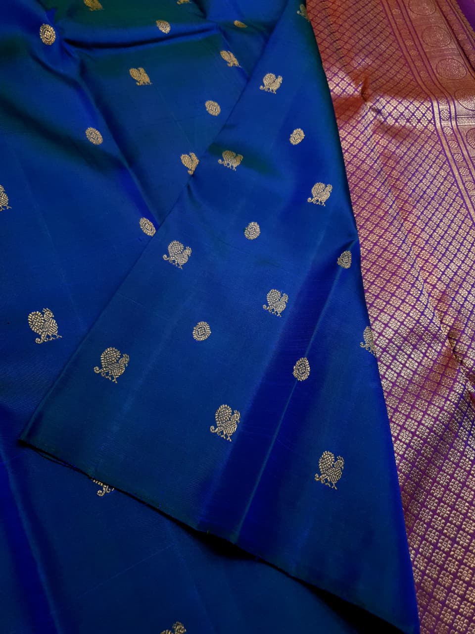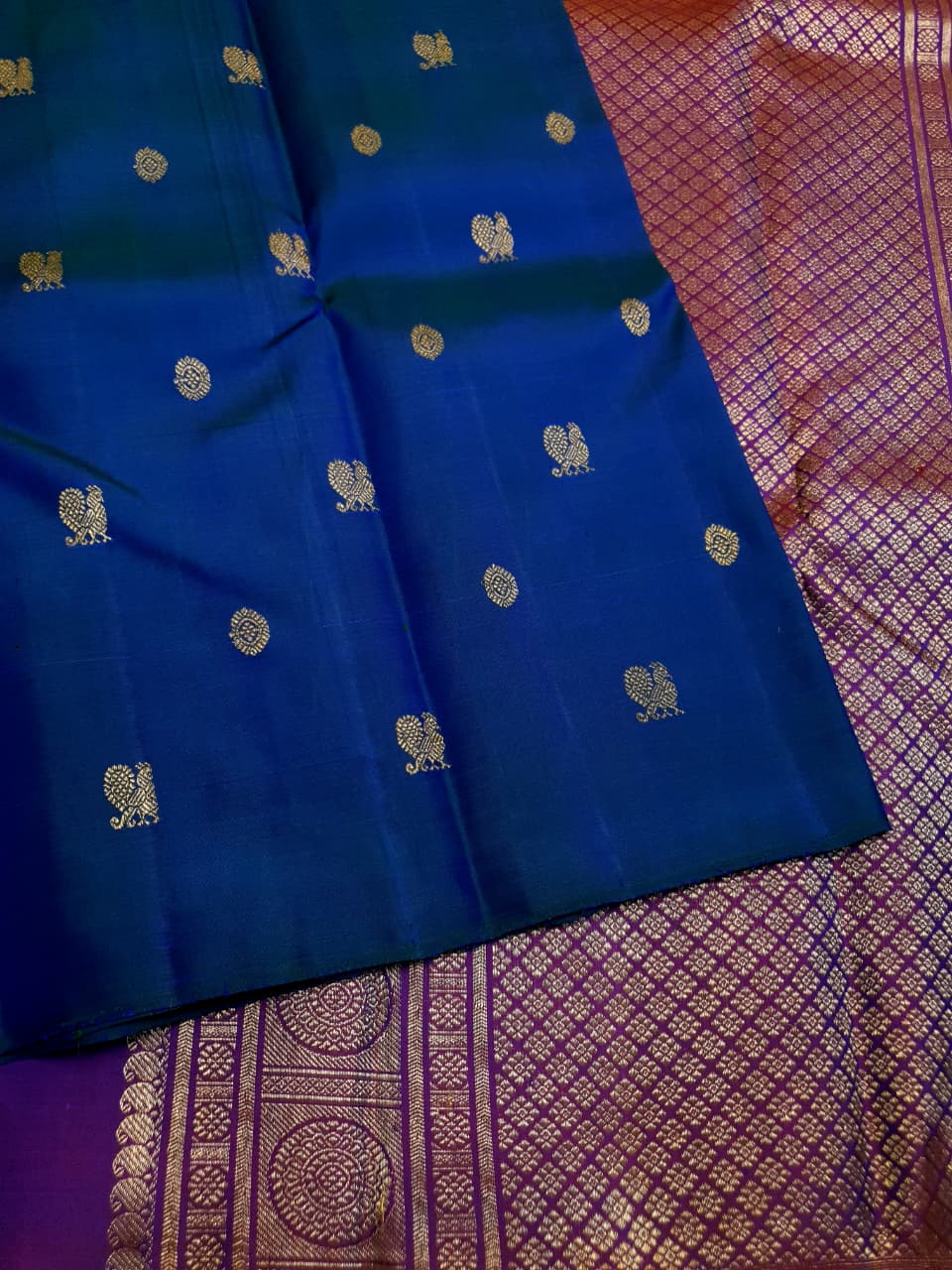 Dark Blue Kanchipuram Handloom 3G Pure Gold Pattu Silk Saree
