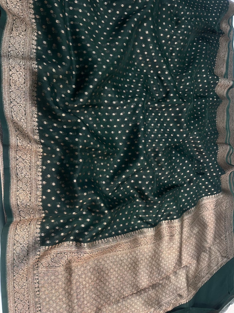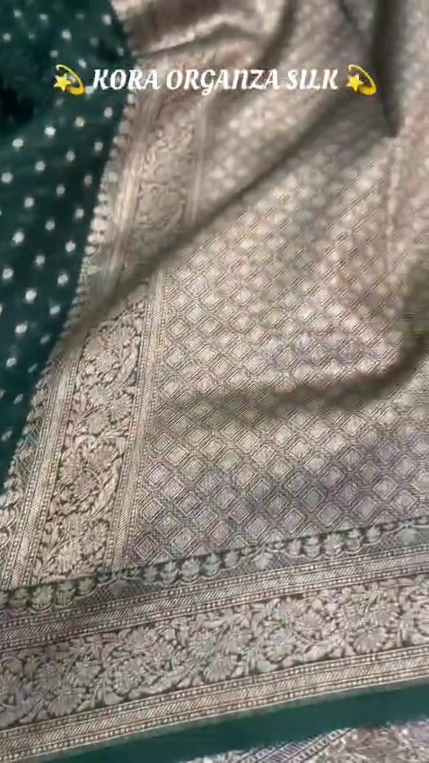 Dark Green.62 Banarasi Handloom Kora Organza Silk Saree