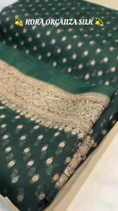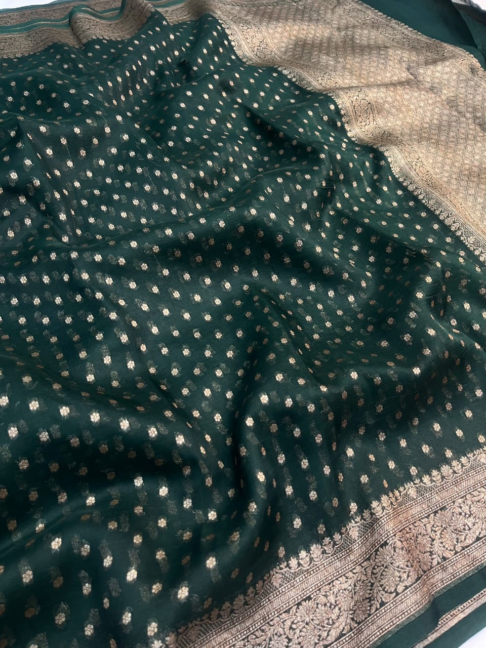 Dark Green Banarasi Handloom Kora Organza Silk Saree