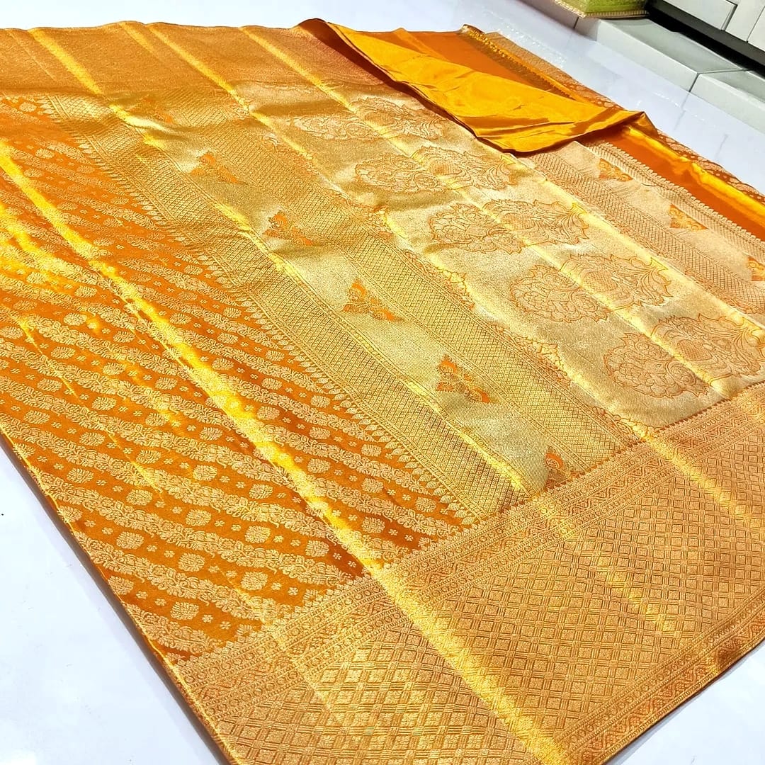 Orange Kanchipuram Handloom Tissue Brocade Silk Saree