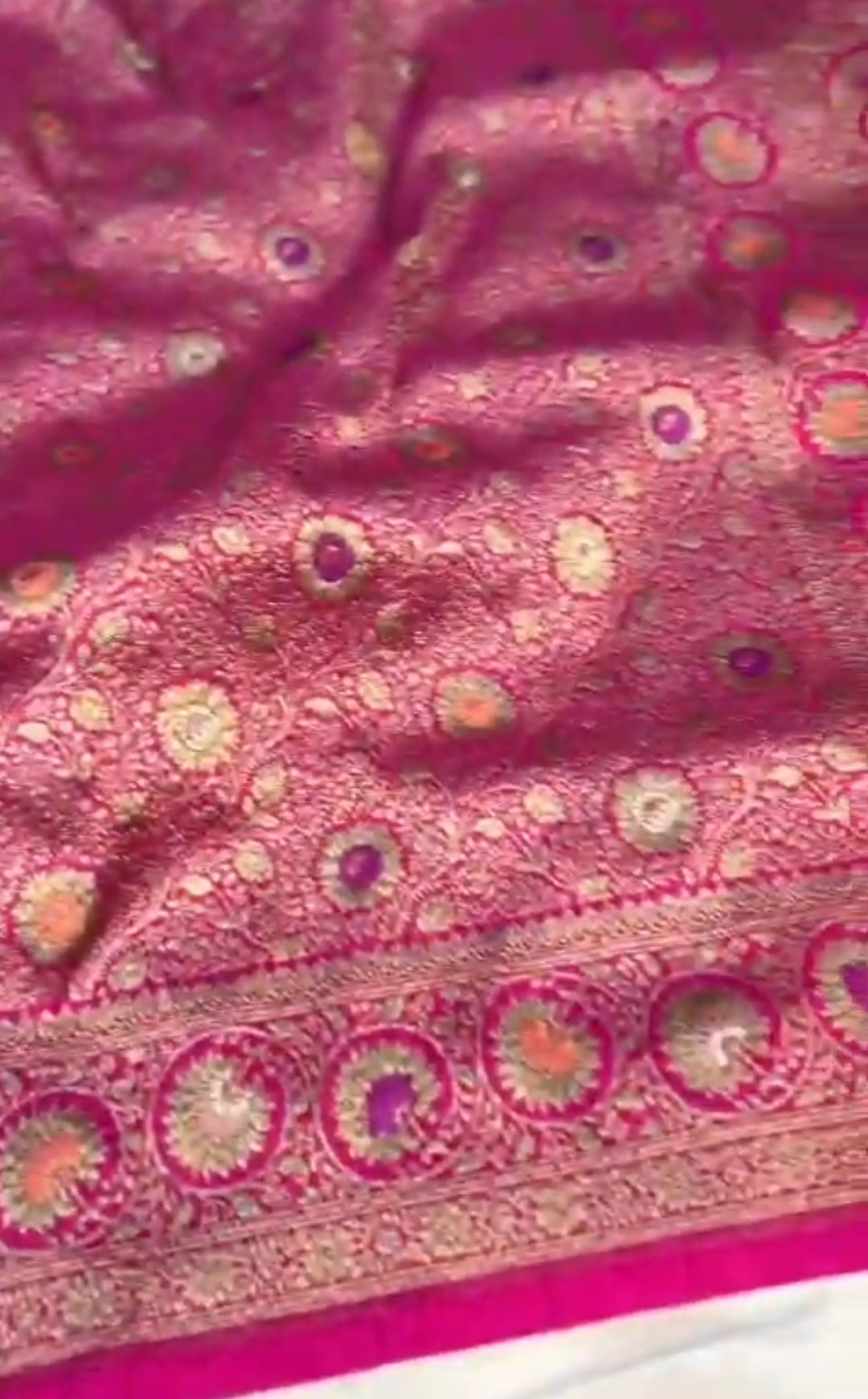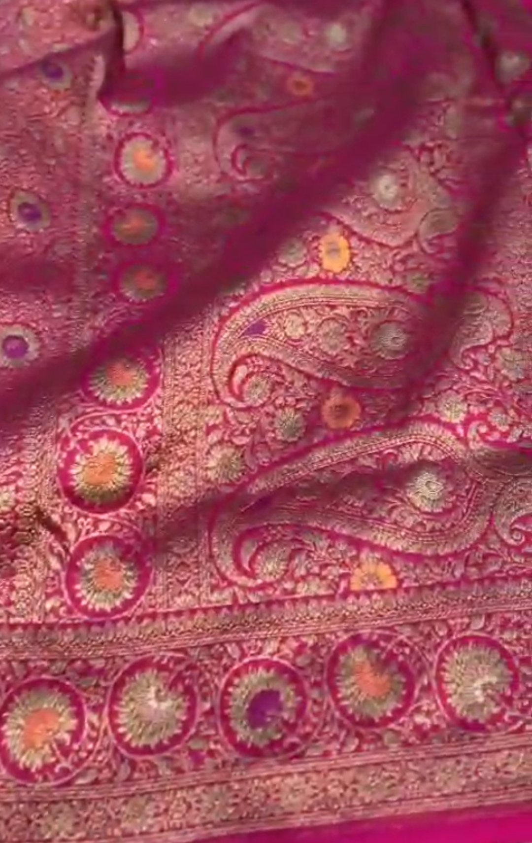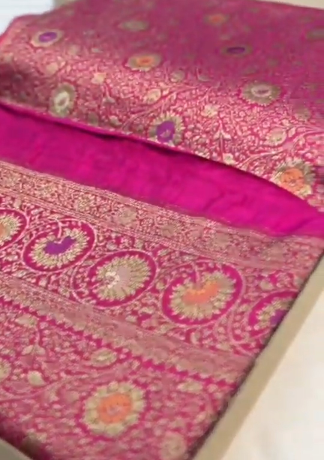 Hot Pink Banarasi Handloom Katan Silk Rangkaat Meenakari Saree