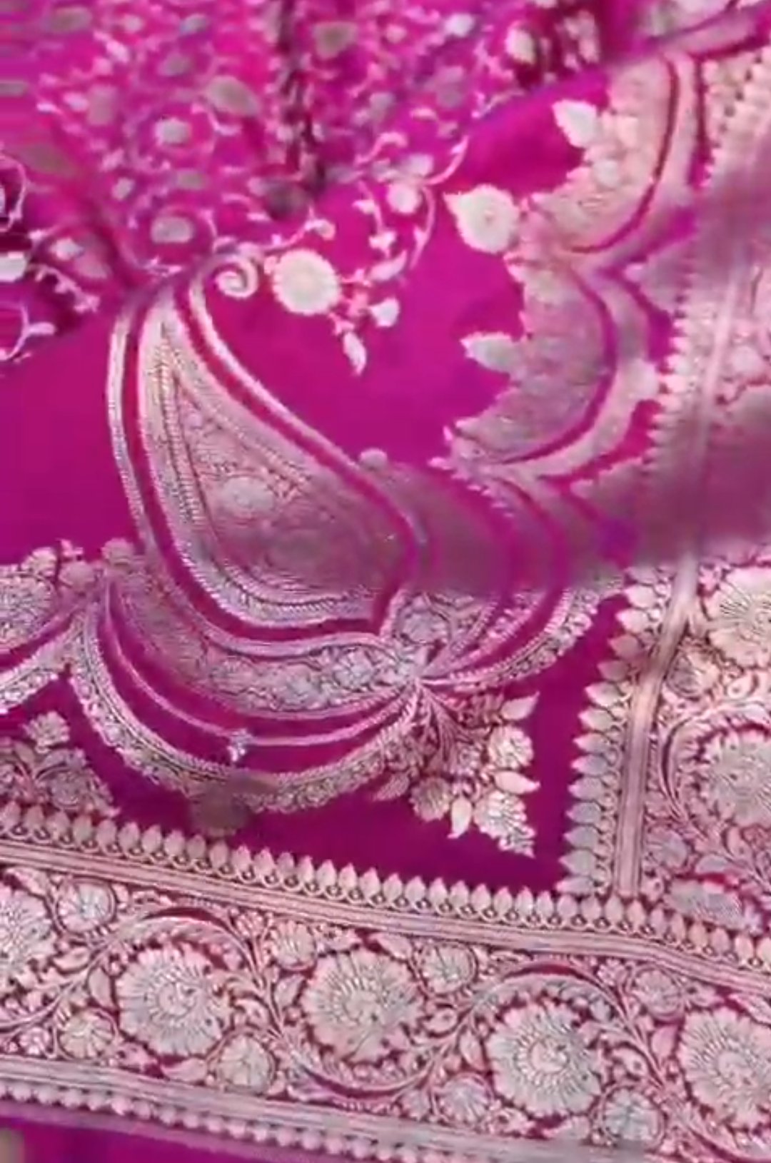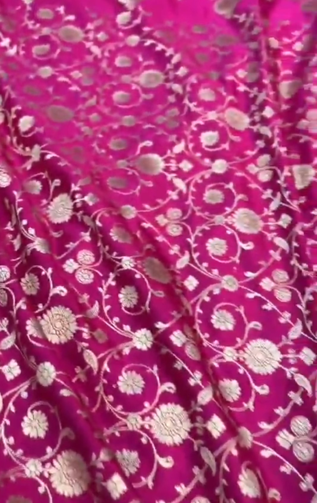Hot Pink Banarasi Satin Katan Silk Swarovski Jangla Saree