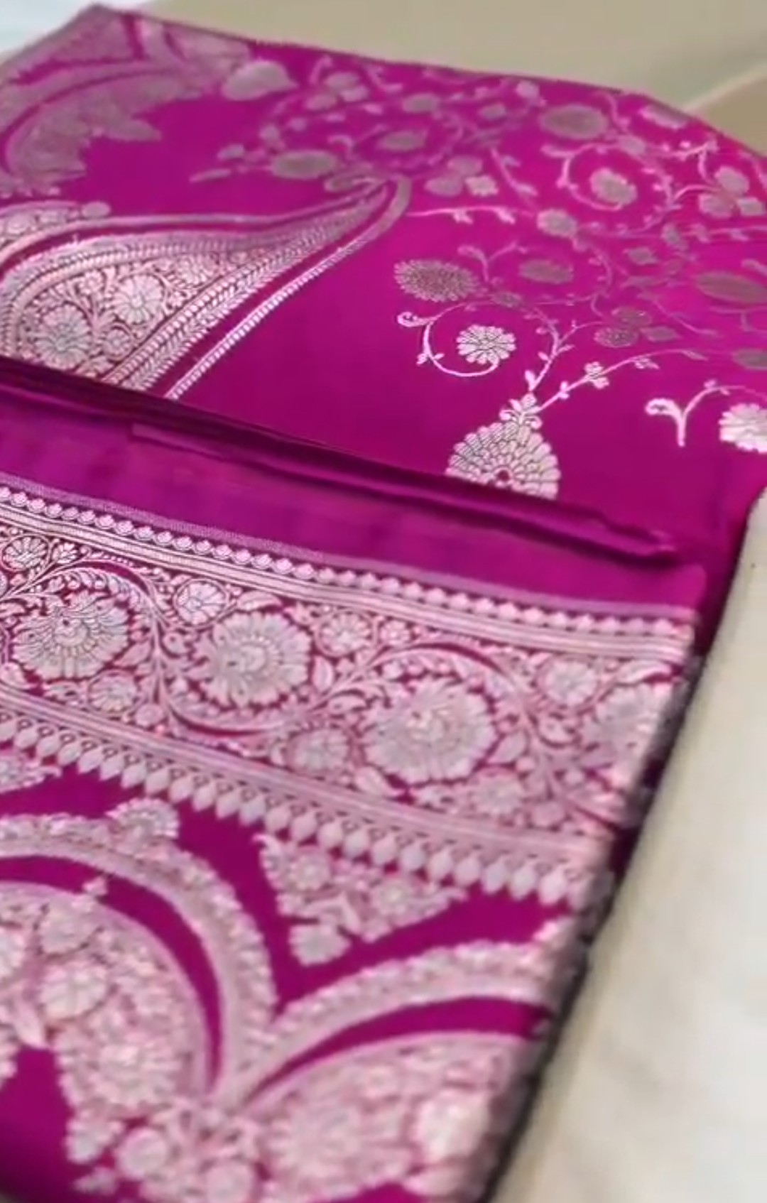 Hot Pink Banarasi Mashru Soft Silk Saree